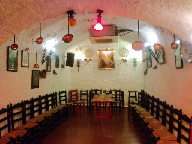 - 洞窟風タブラオ、ということですがなぜかフライパンがたくさん飾ってある。