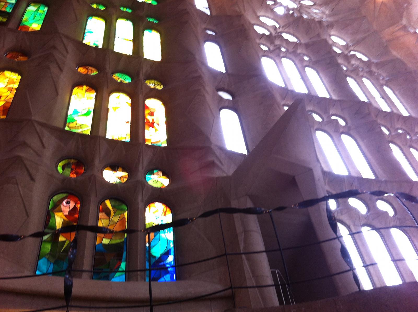 ガウディが設計をしているそうですが、ステンドグラスや入り口の彫刻は彼よりも後の人が
