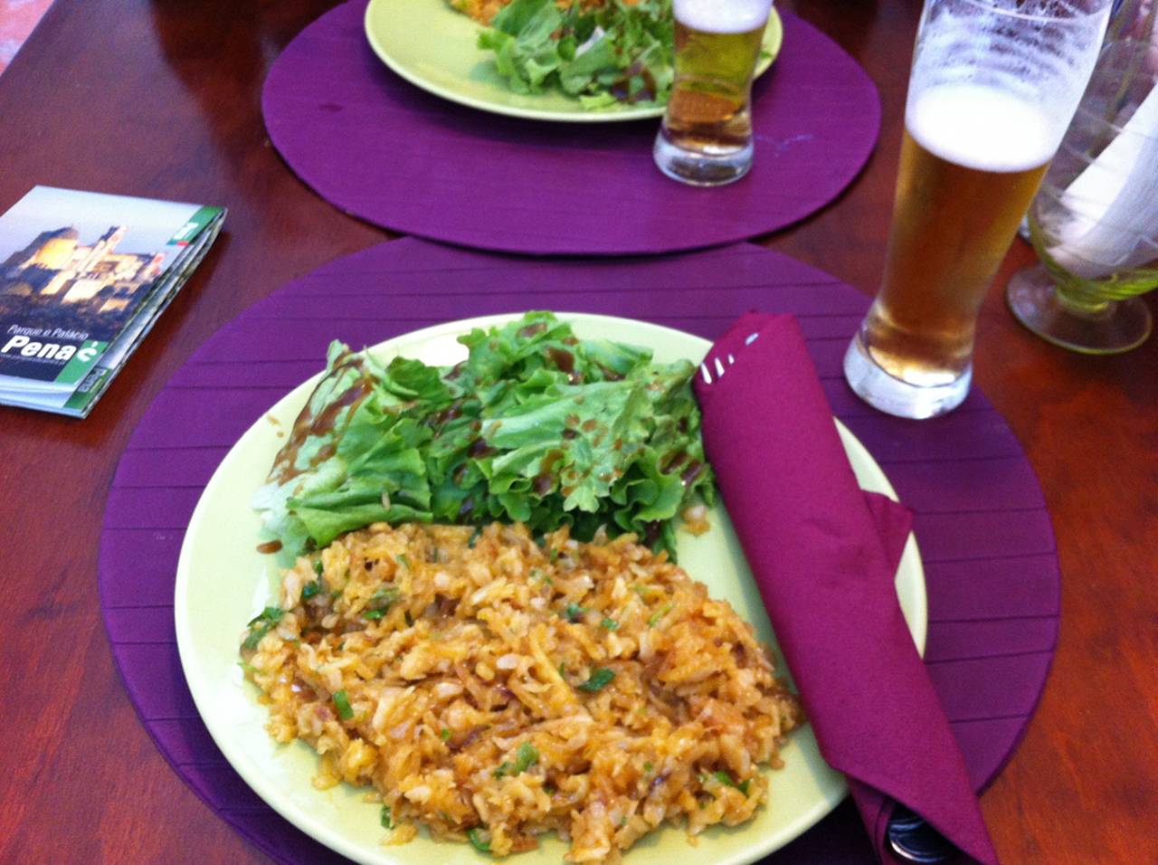干しタラとたまねぎの炒め物。美味しいけど、味が濃い。ビールと食後のコーヒーもついて