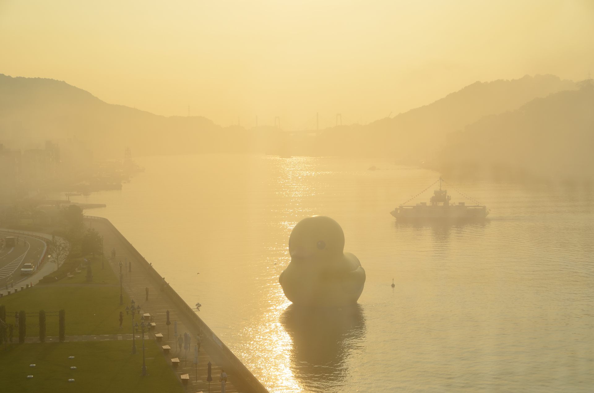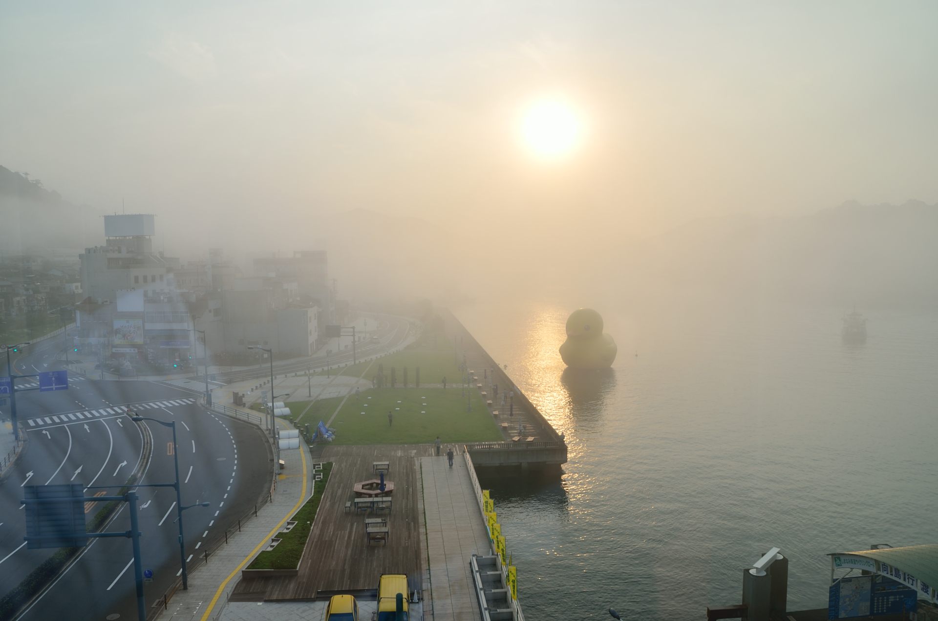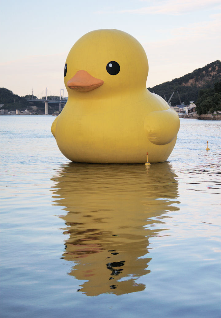 画像 瀬戸内海に浮かぶラバー・ダック(14日午前、広島県尾道市で)