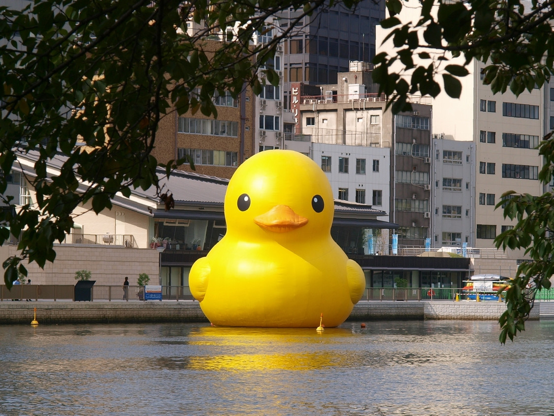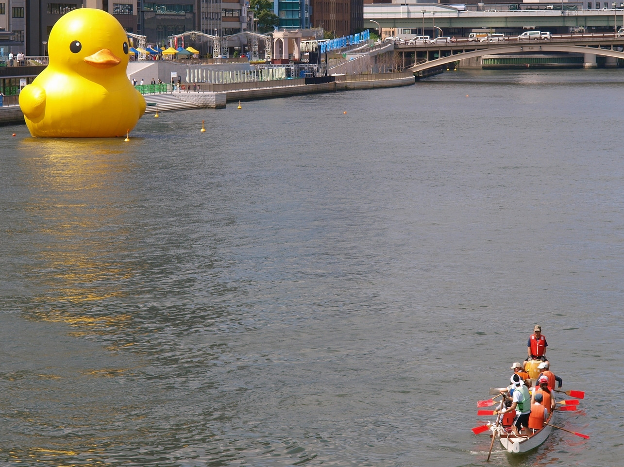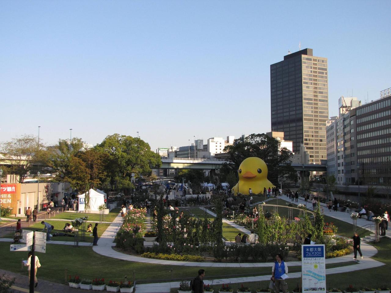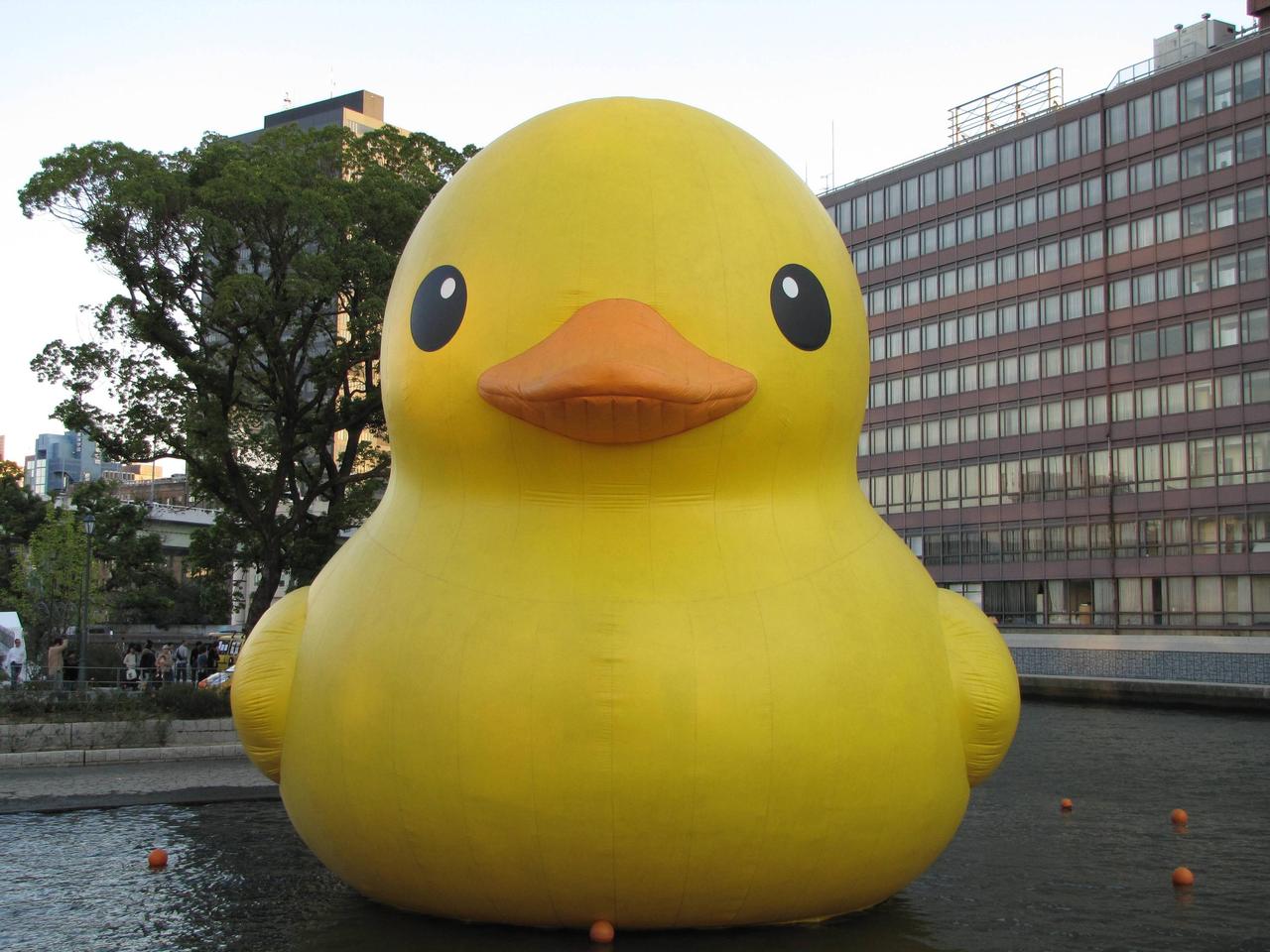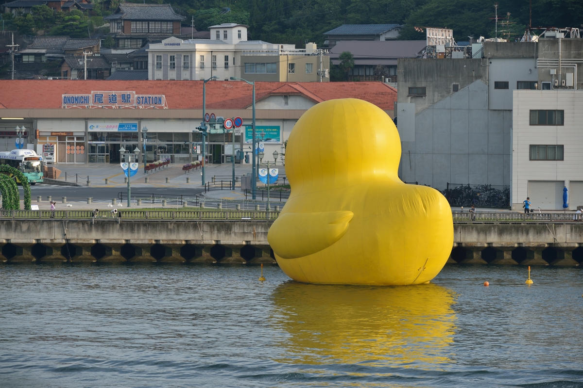 尾道も悪くは無いが、大阪の方が回りに建物があるから、アヒルのでかさが分かり易いな。