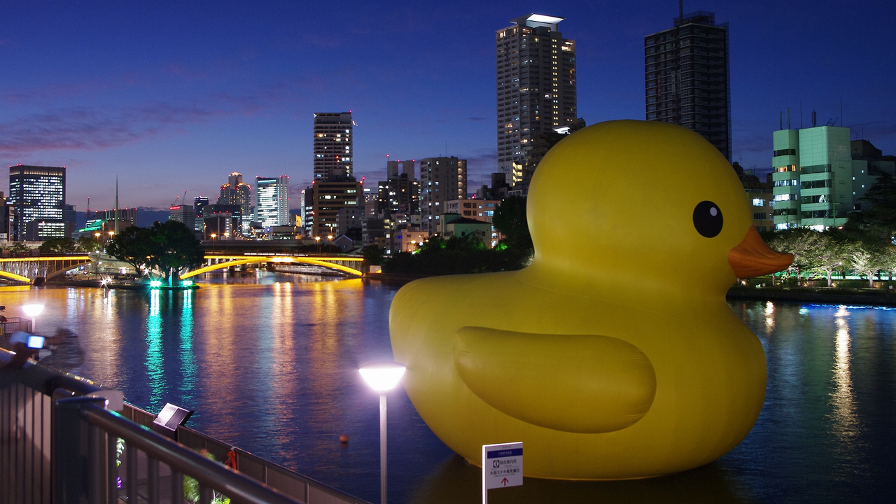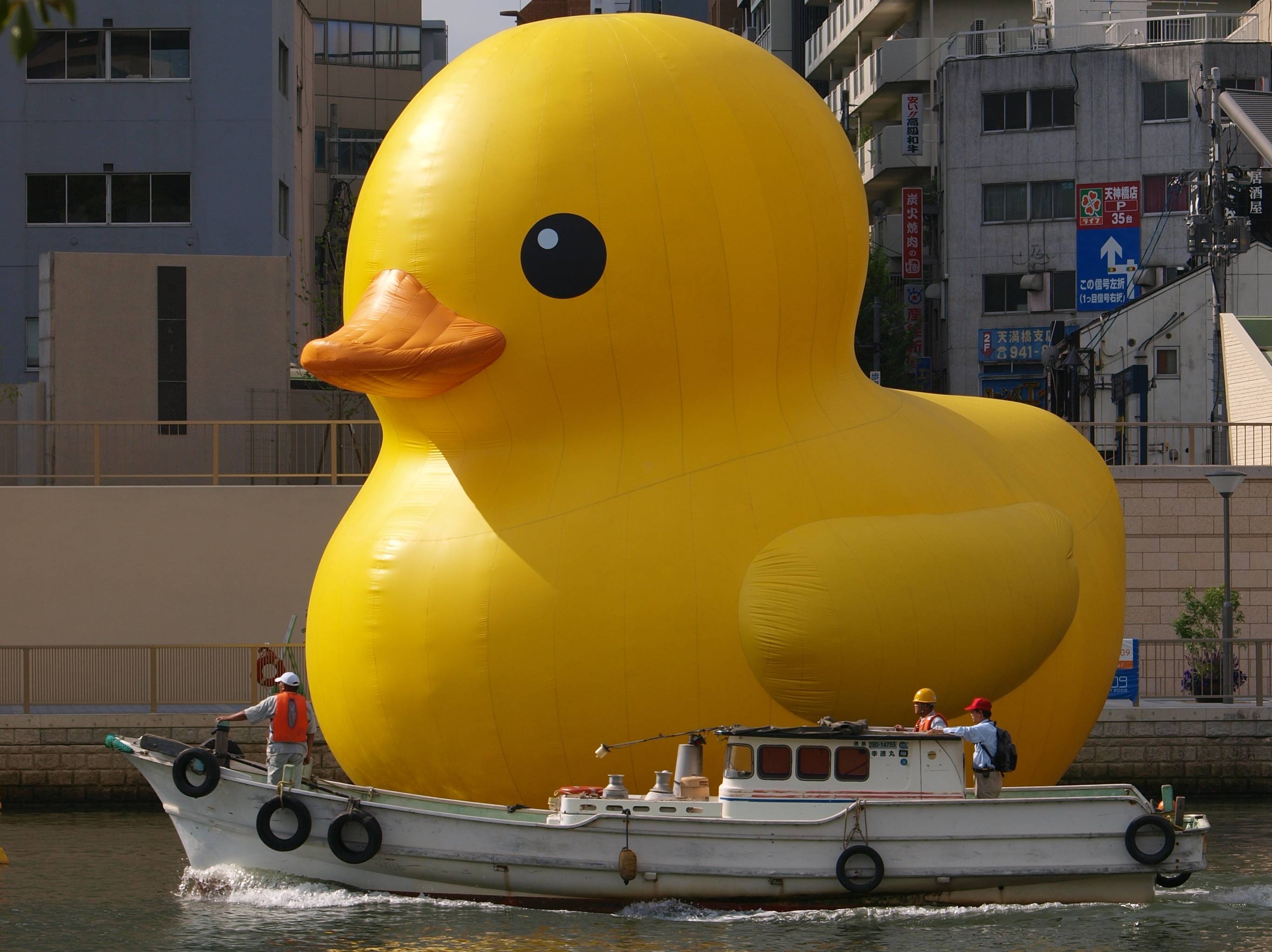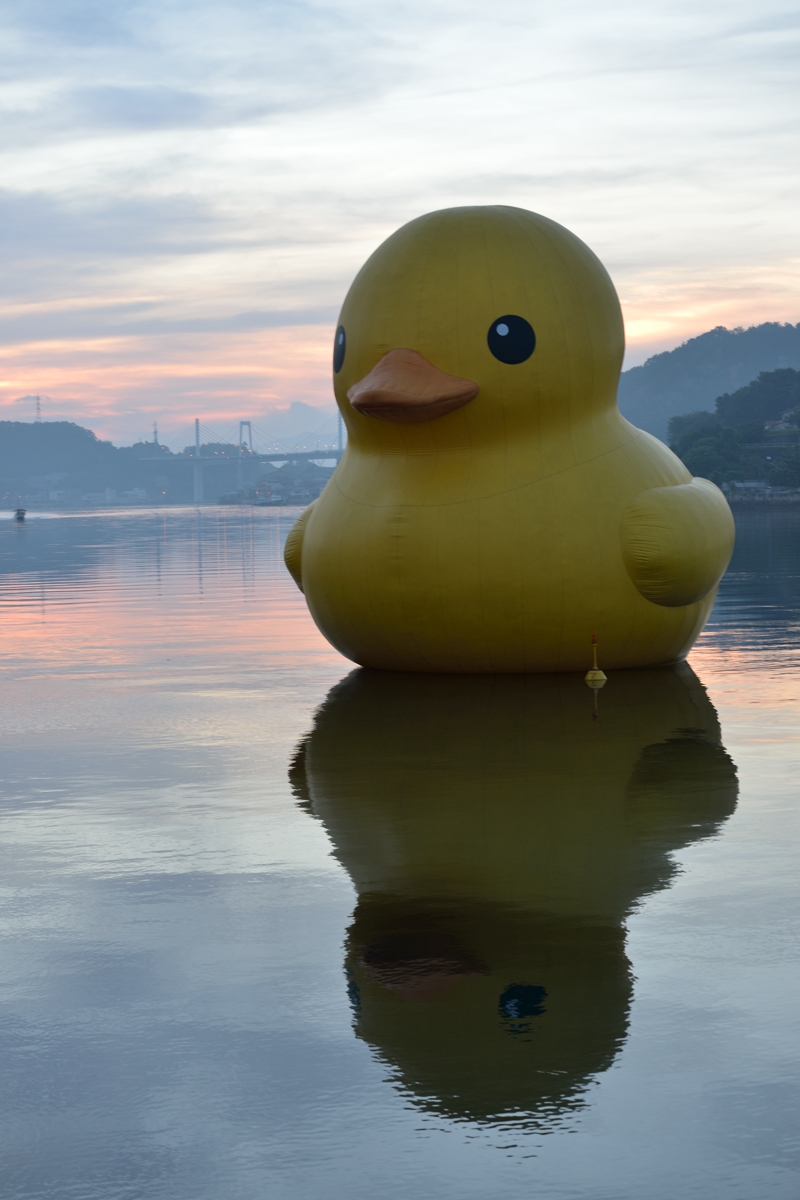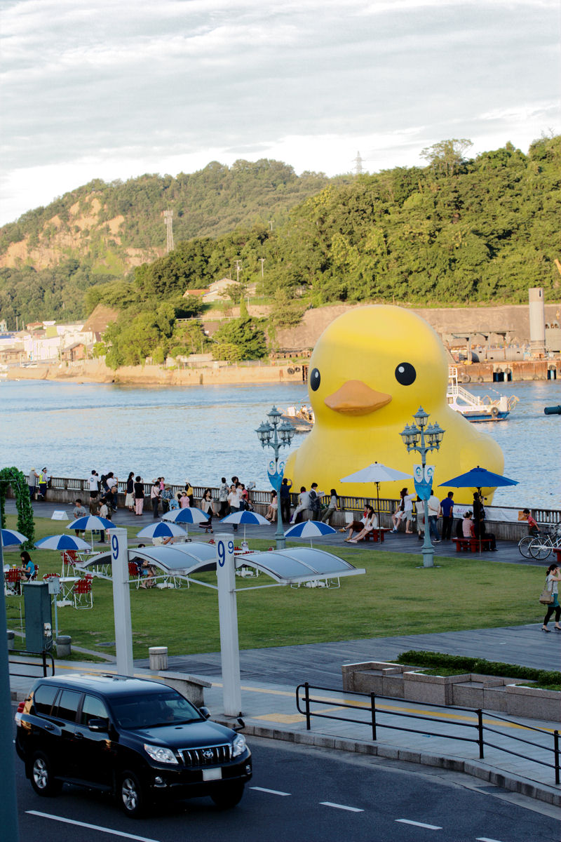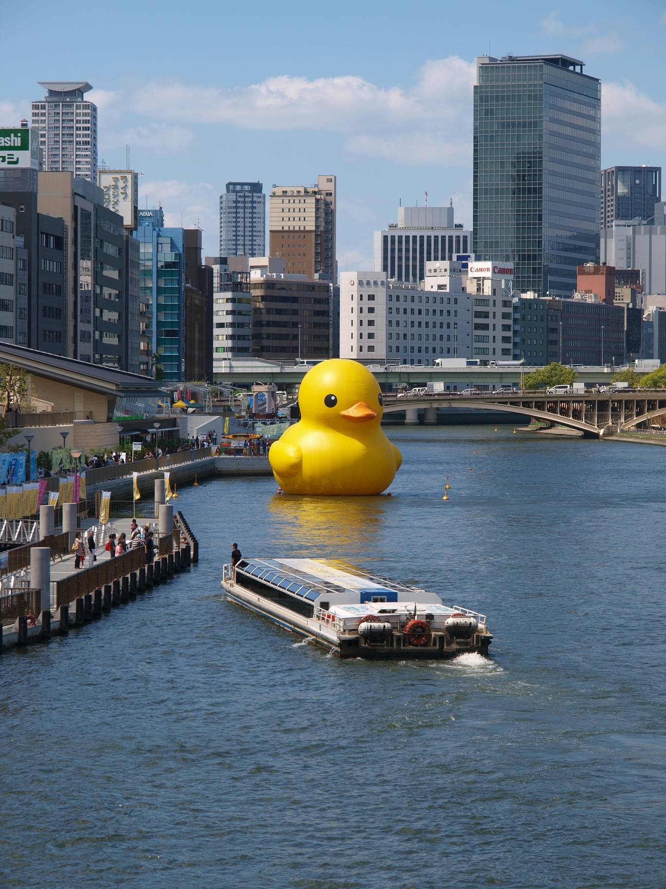尾道も悪くは無いが、大阪の方が回りに建物があるから、アヒルのでかさが分かり易いな。