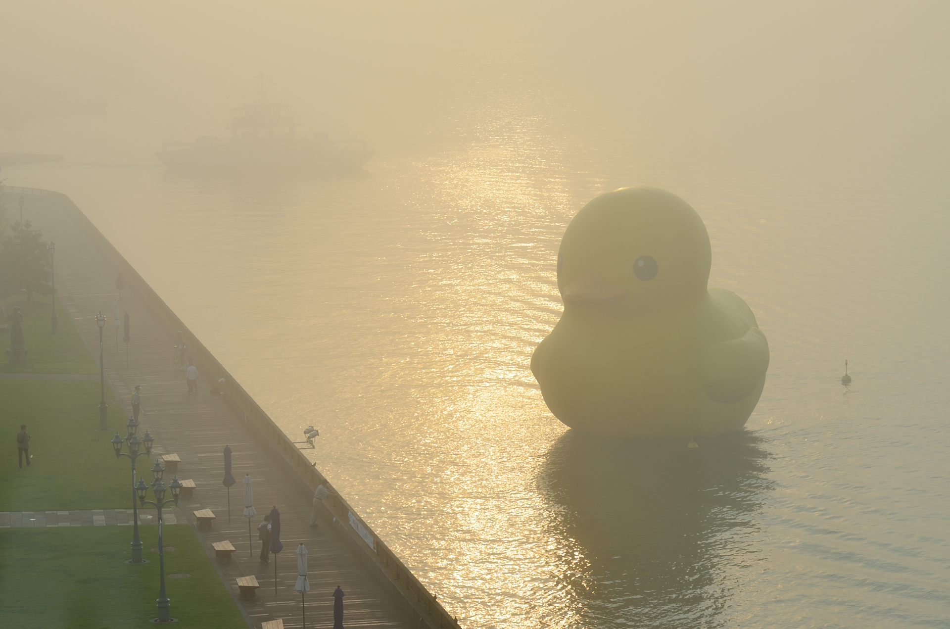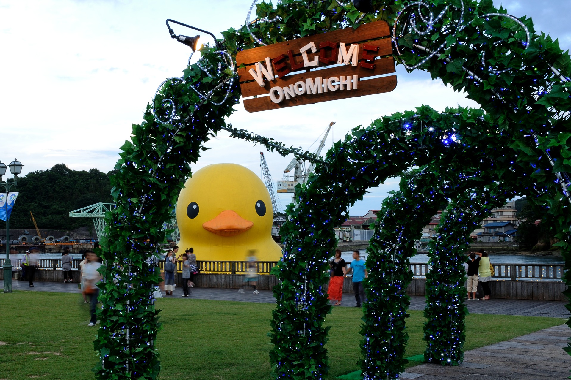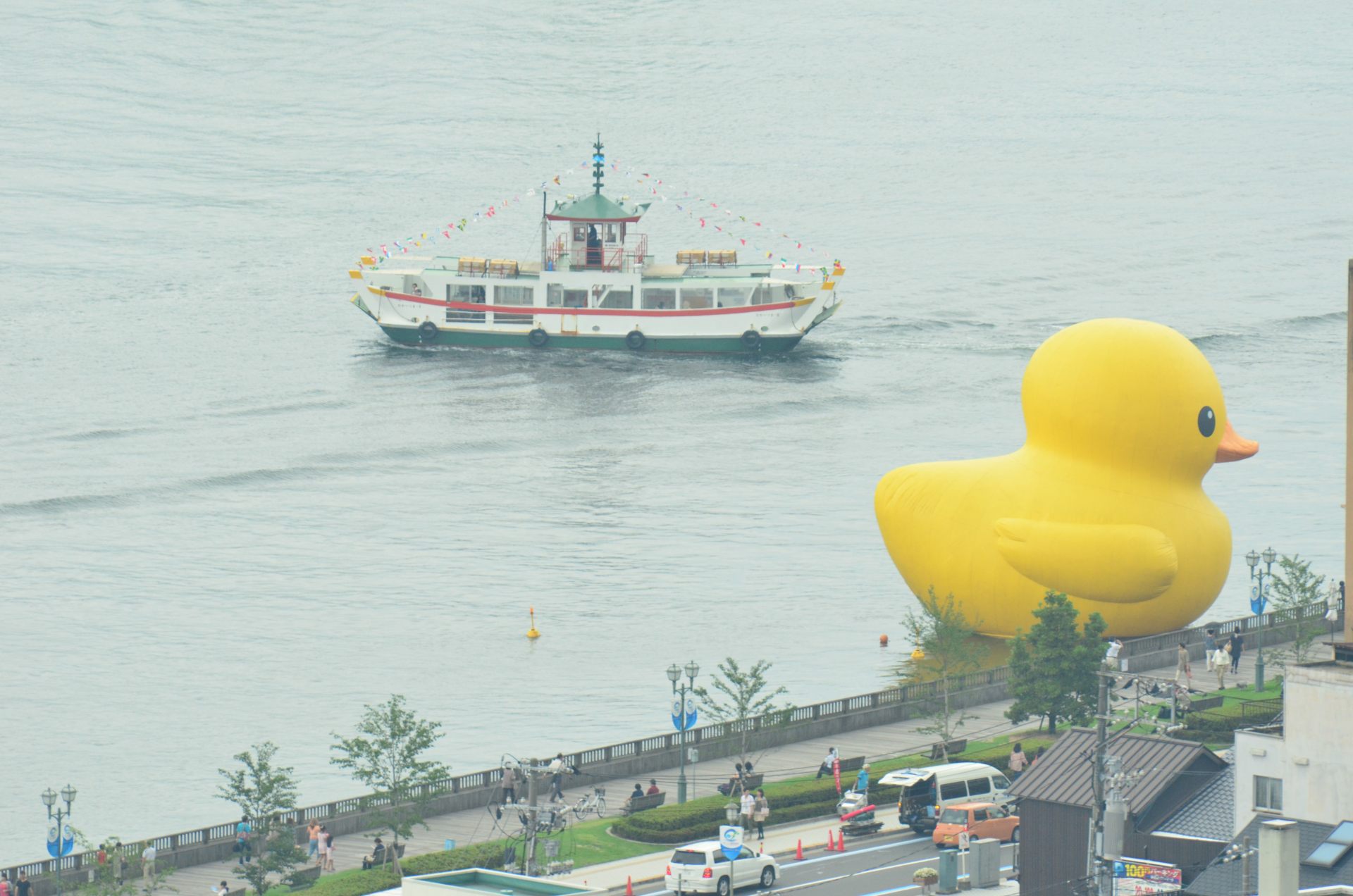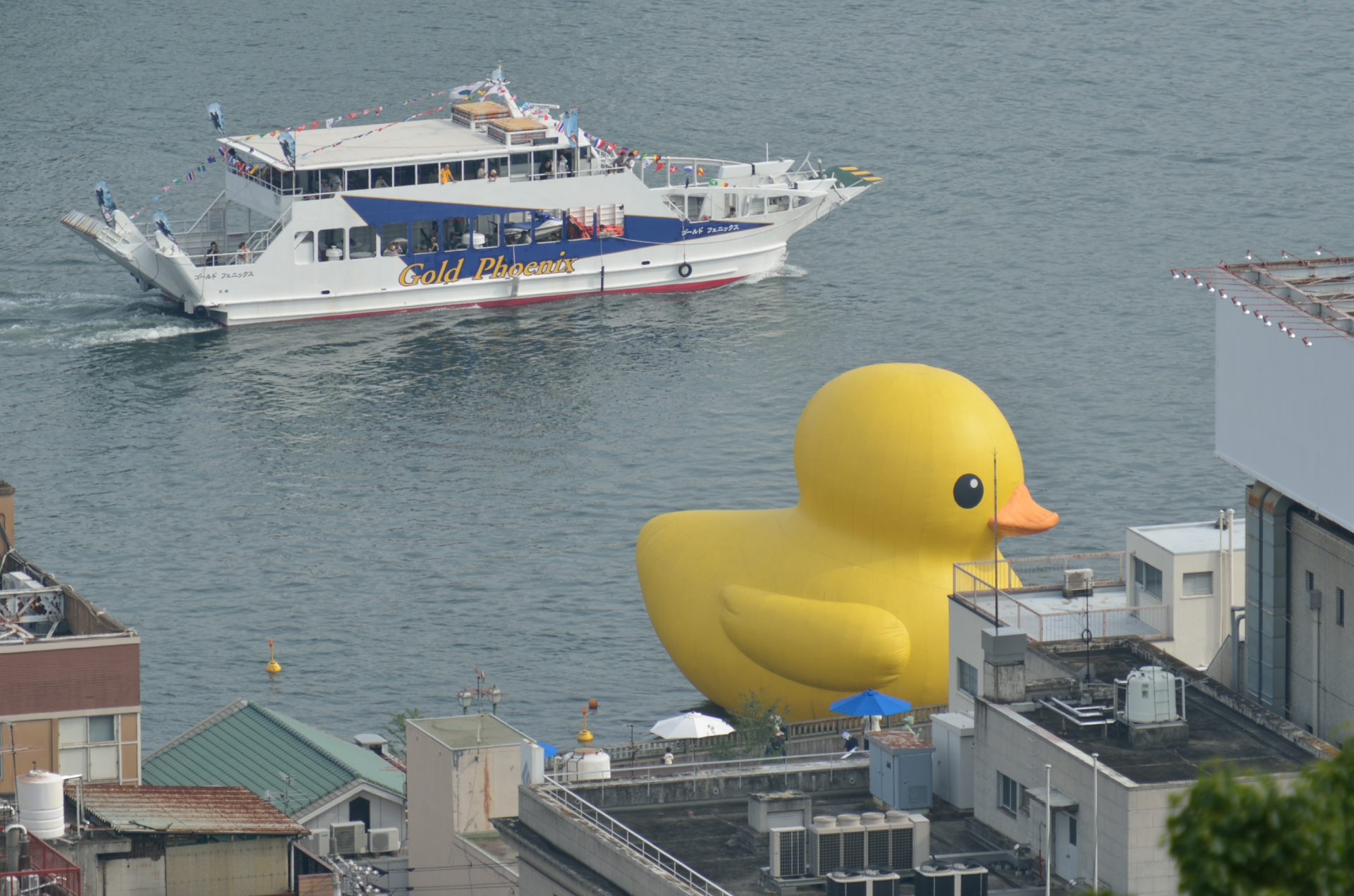 尾道も悪くは無いが、大阪の方が回りに建物があるから、アヒルのでかさが分かり易いな。