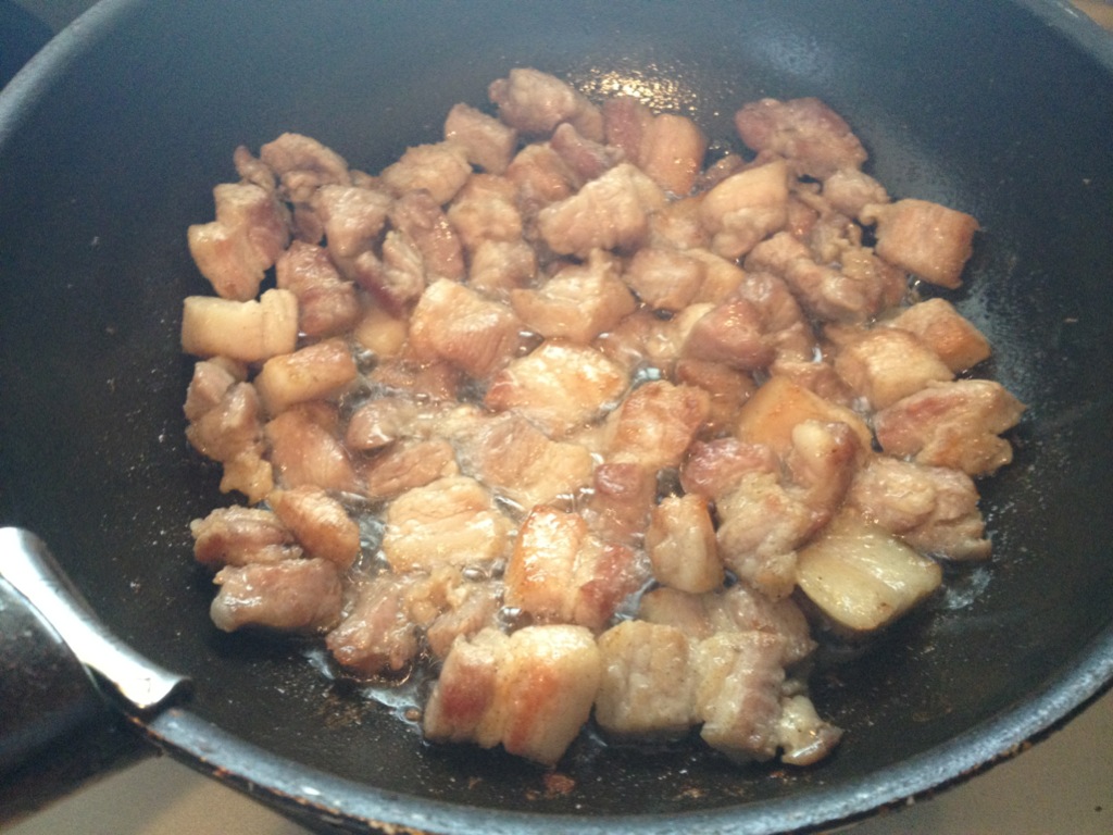 - さあ肉を焼くざんすよ!中火でまんべんなくこんがり焼くざんす