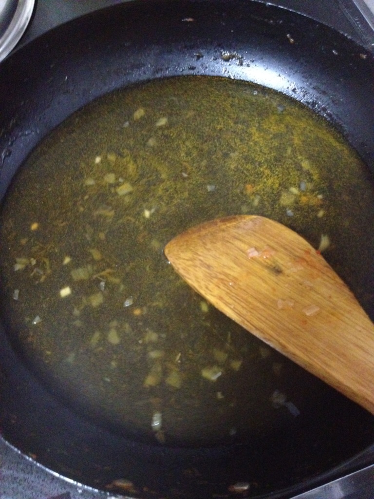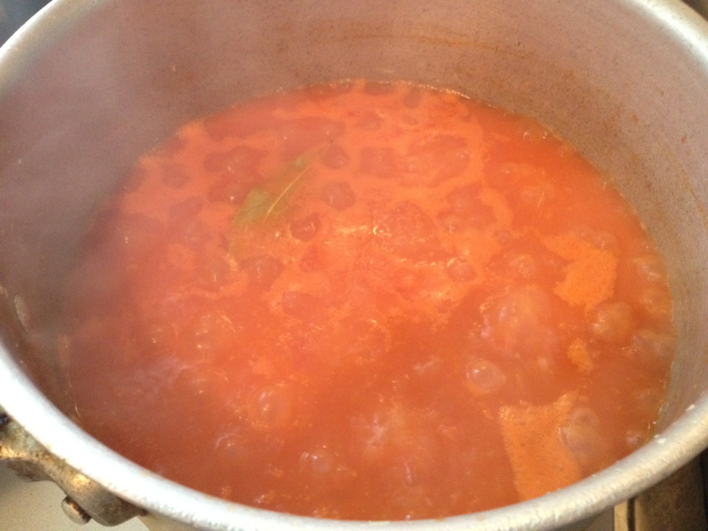 - ローリエ(ローレル、月桂樹)を1枚いれてグツグツ煮るざんすよ!また書き忘れてたざんすね!