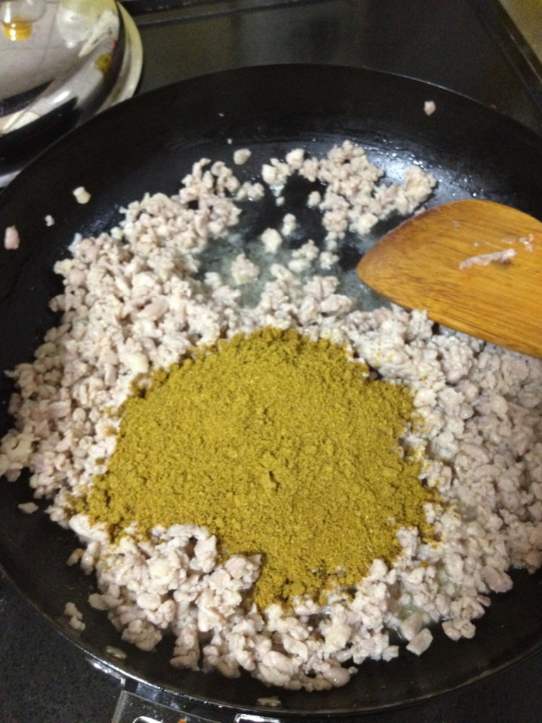 お肉炒めたらオリジナルブレンドのカレースパイス投入