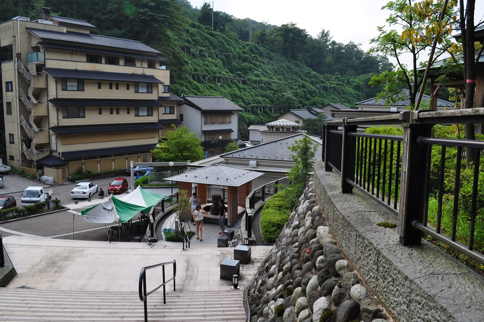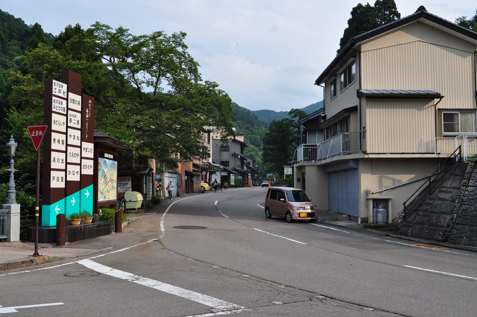 温泉街の街並み。一枚目はゆいなが修学旅行帰りに歩いてたとこかな。