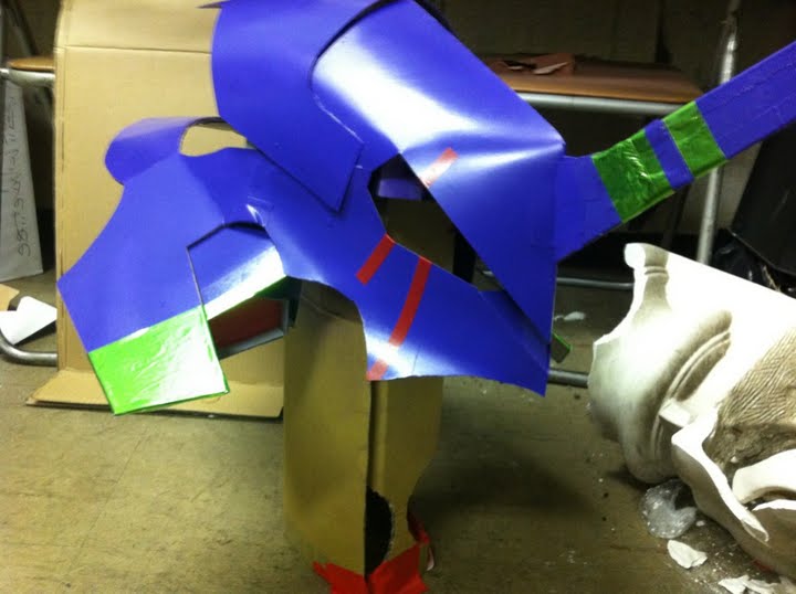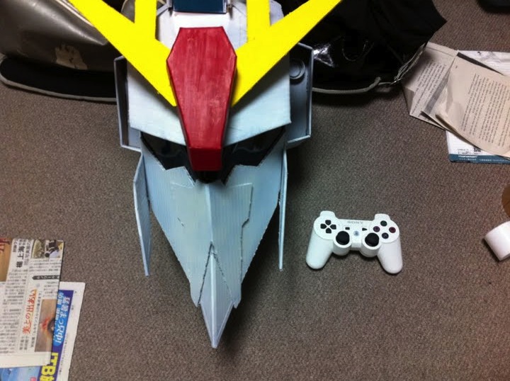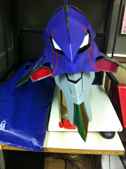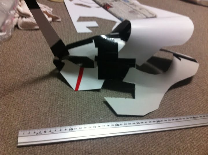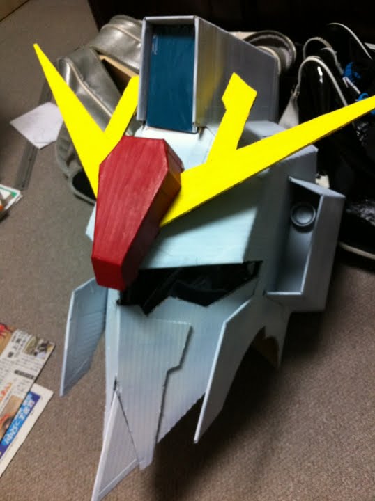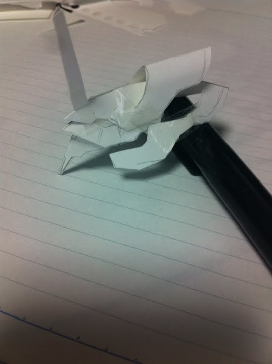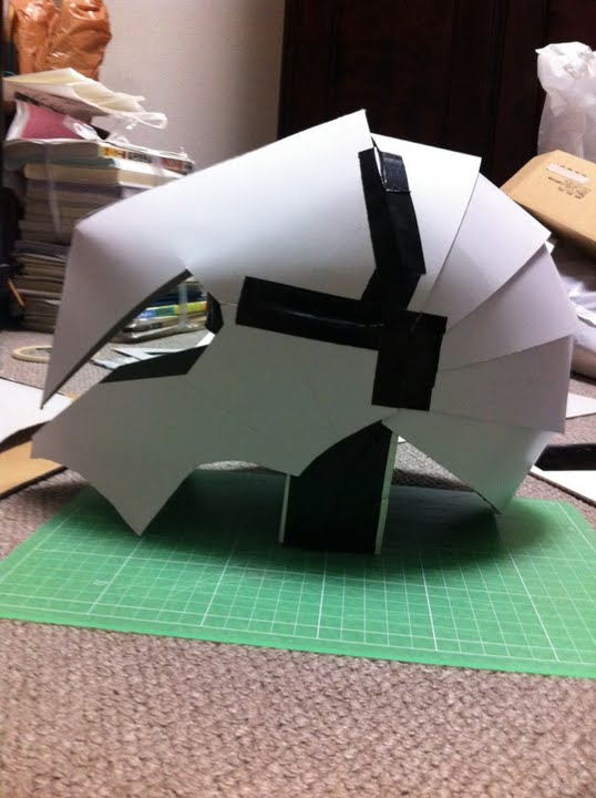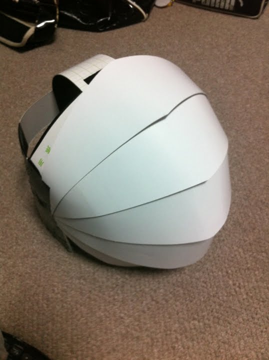 頭に合うようにまず工作用紙でヘルメットみたいなんを作って、その上に装甲はりつける。