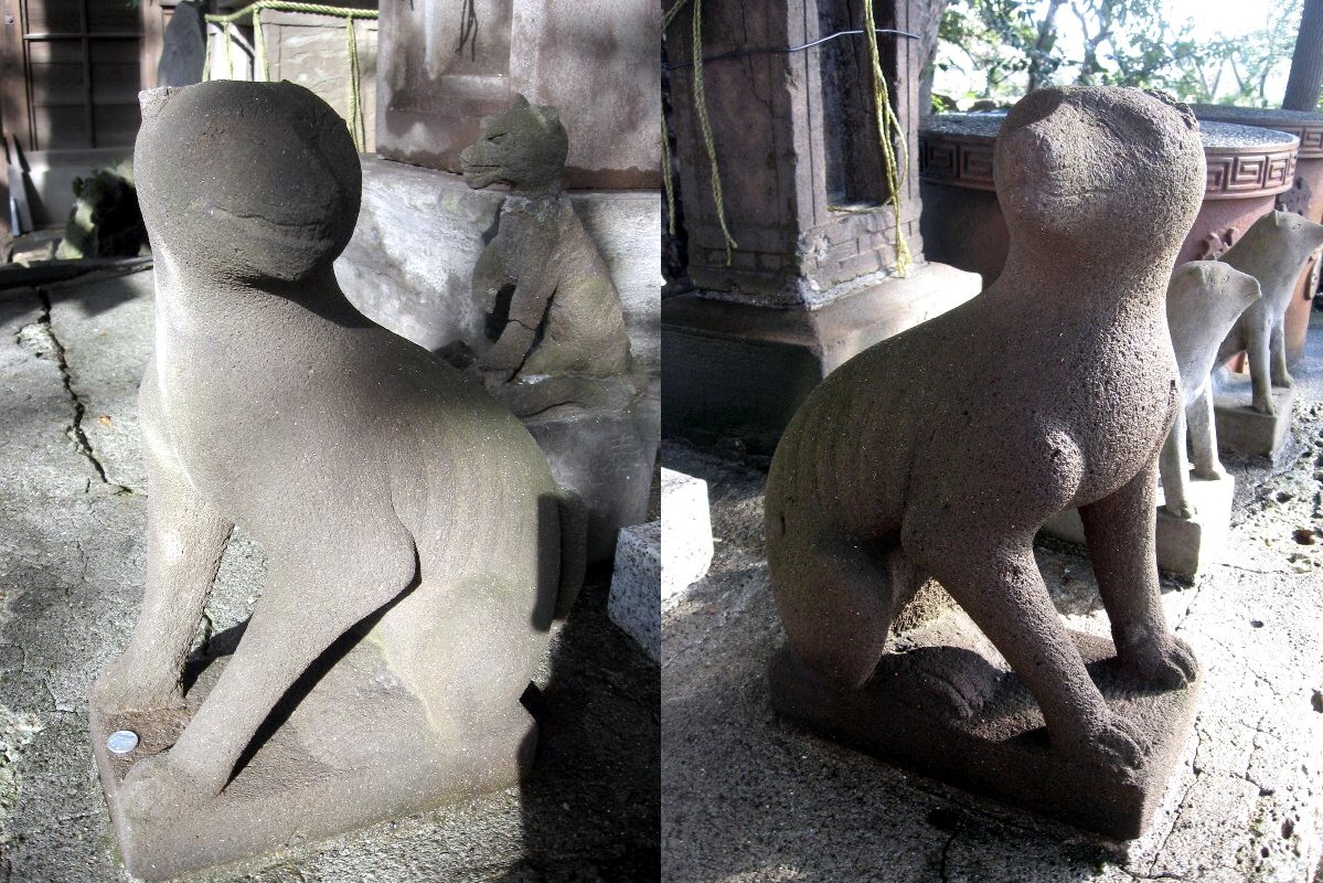こちらの像は、一見すると狼と言うよりも、むしろ異形の狛犬に見えますが