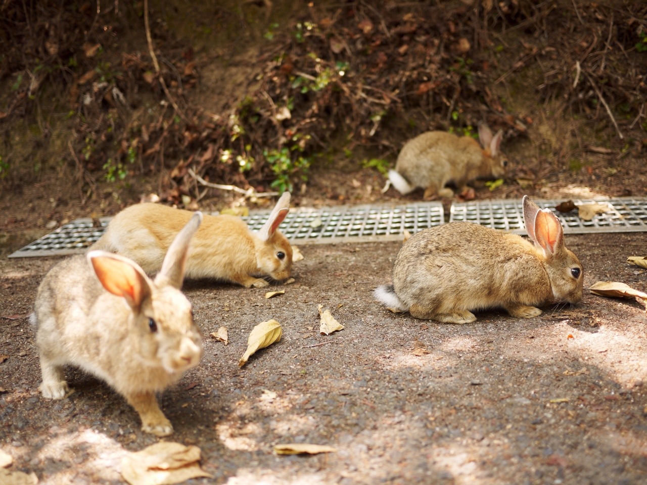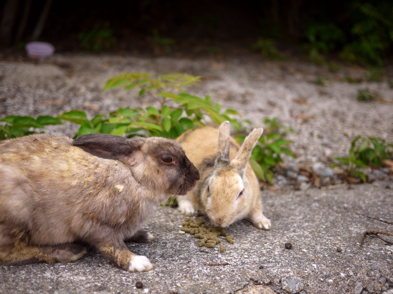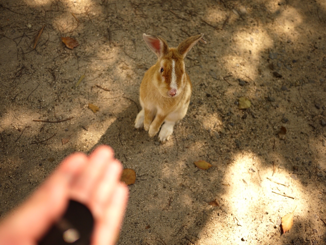 港付近のウサギはかなり人慣れしていてワラワラ寄ってきた。逆に山の方のウサギは警戒心が強かったな。