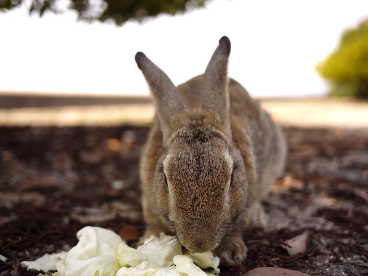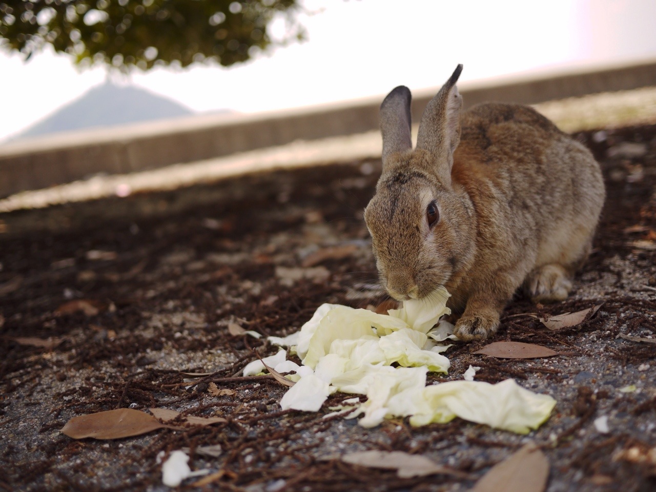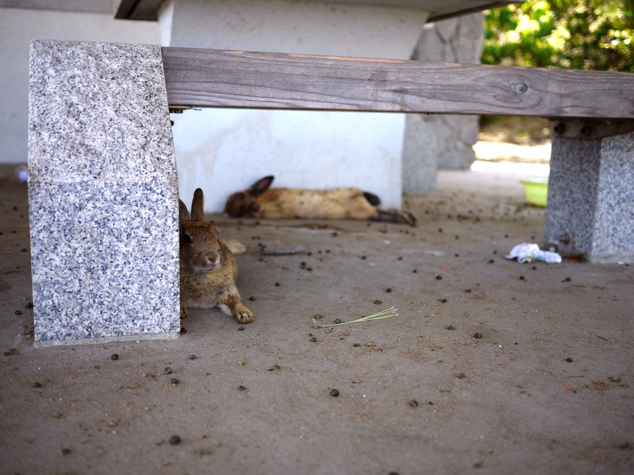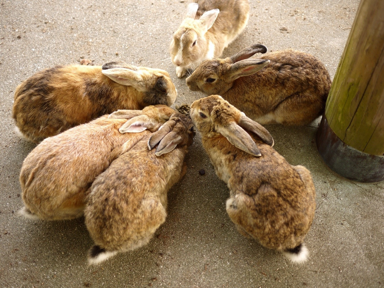 港付近のウサギはかなり人慣れしていてワラワラ寄ってきた。逆に山の方のウサギは警戒心が強かったな。