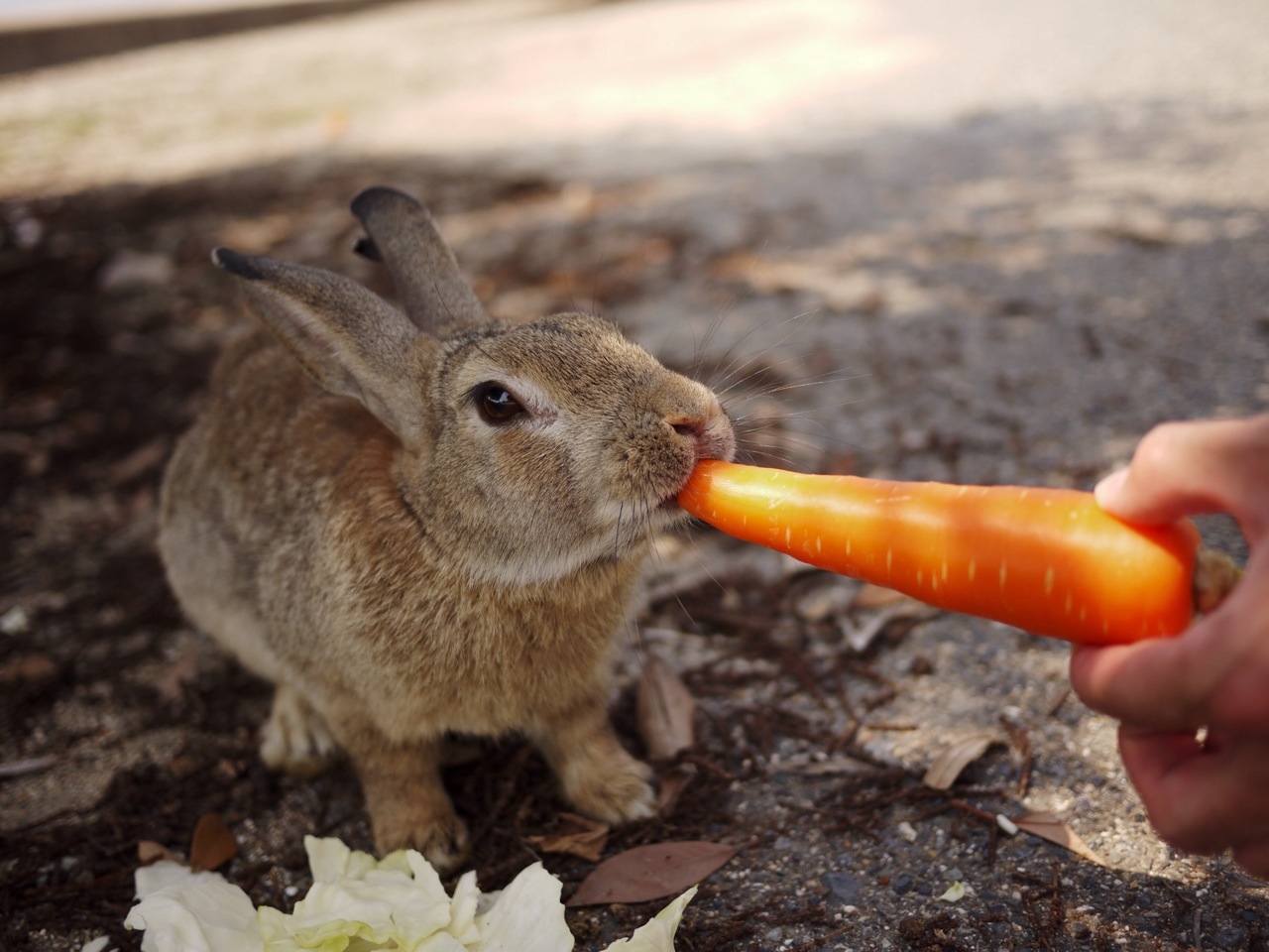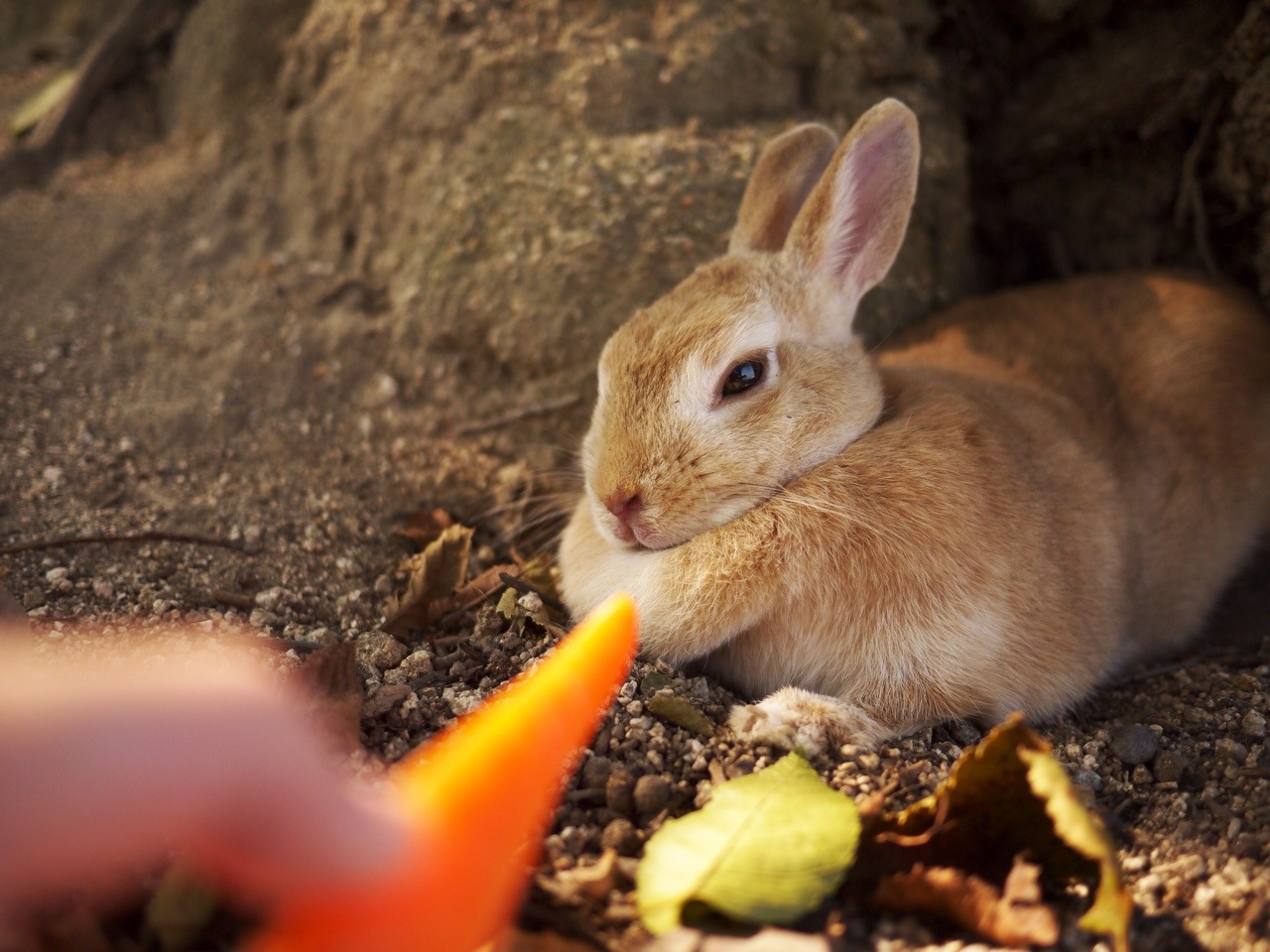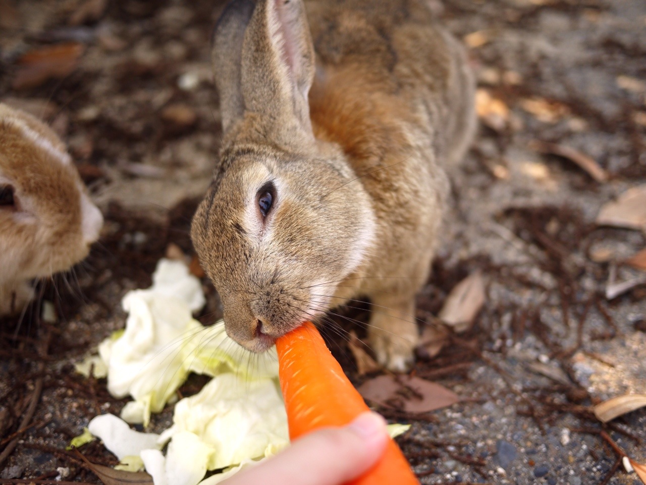 このあと茶色のちびうさぎに、ものすごい力で人参をぶんどられた。