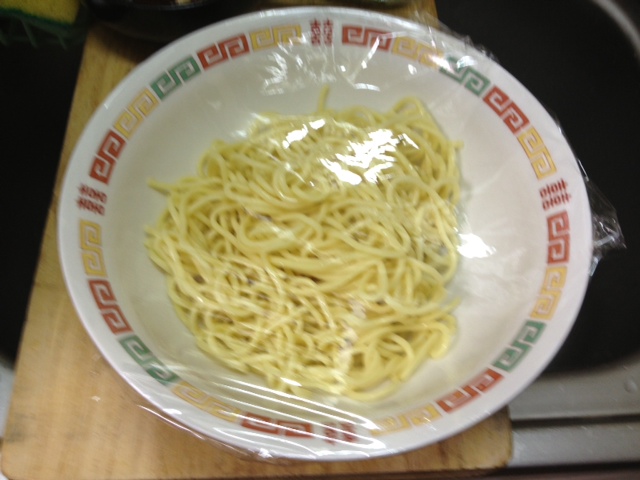 水でほぐした麺を丼に入れてラップして500Wで2分が丁度良い感じ