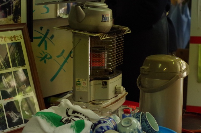ストーブで湯を沸かしてた