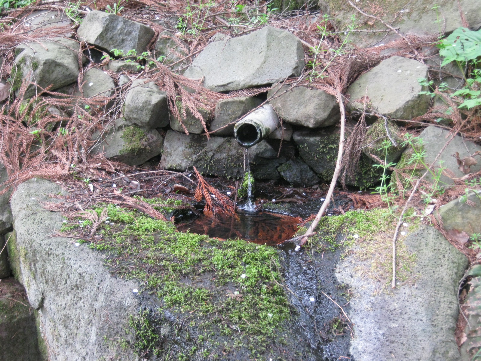 石碑の横にはパイプがあってチョロチョロと水が湧いてました