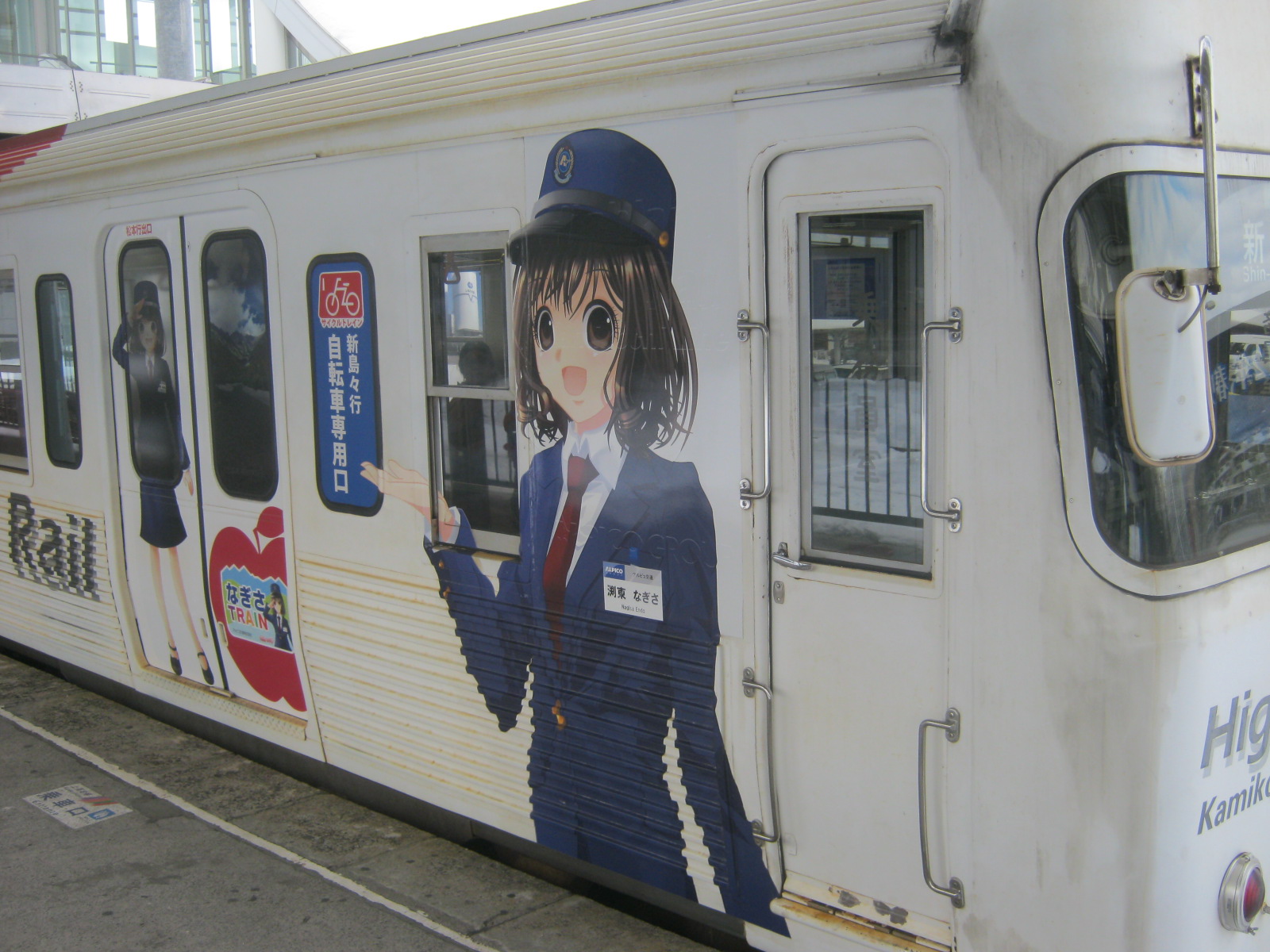来年の開業に合わせて次の飯山駅がシールで隠されて透けて見えるw(写真じゃ見えないけどね)