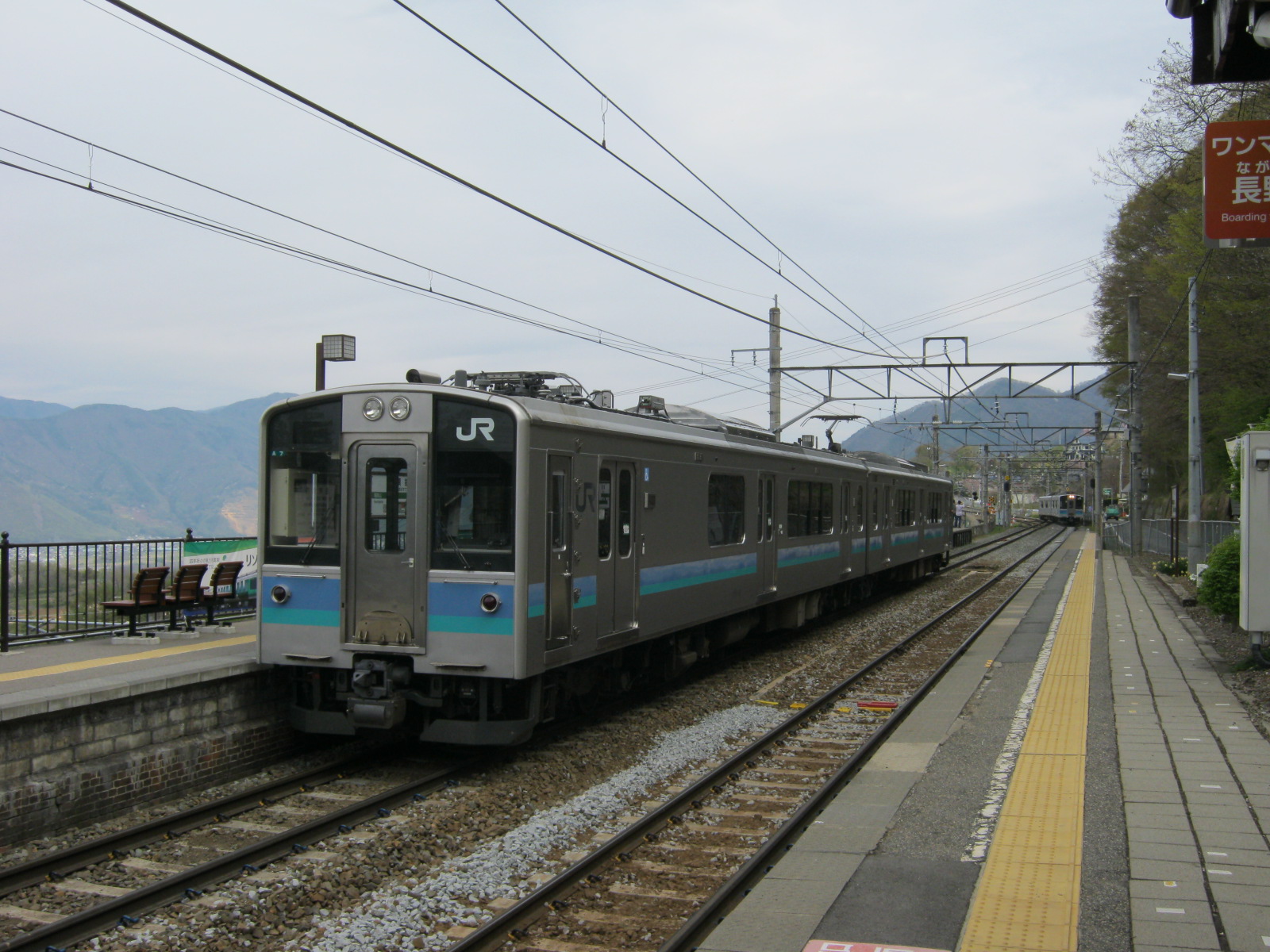 ここで列車を1本落として善光寺平の風景を見てました