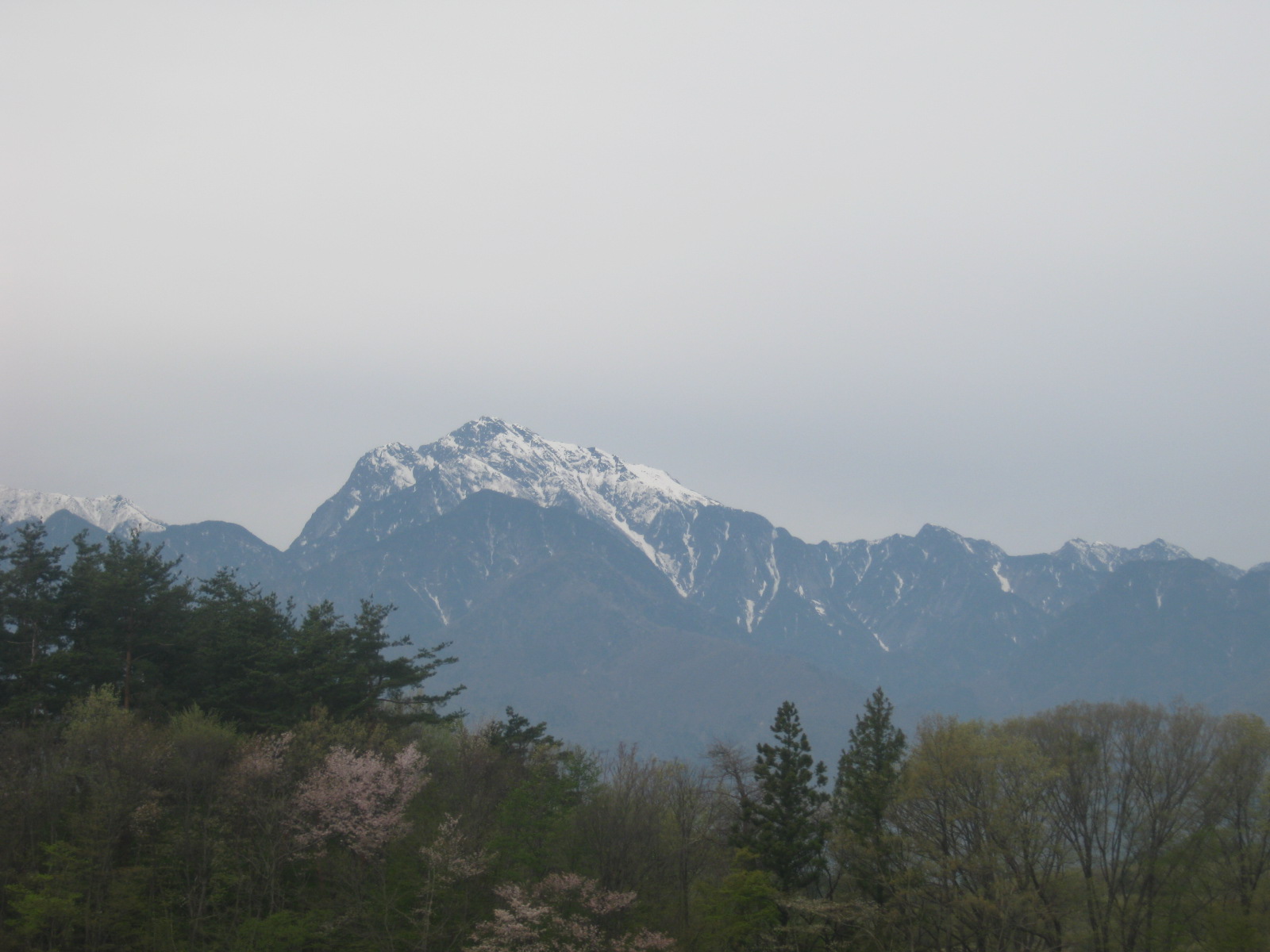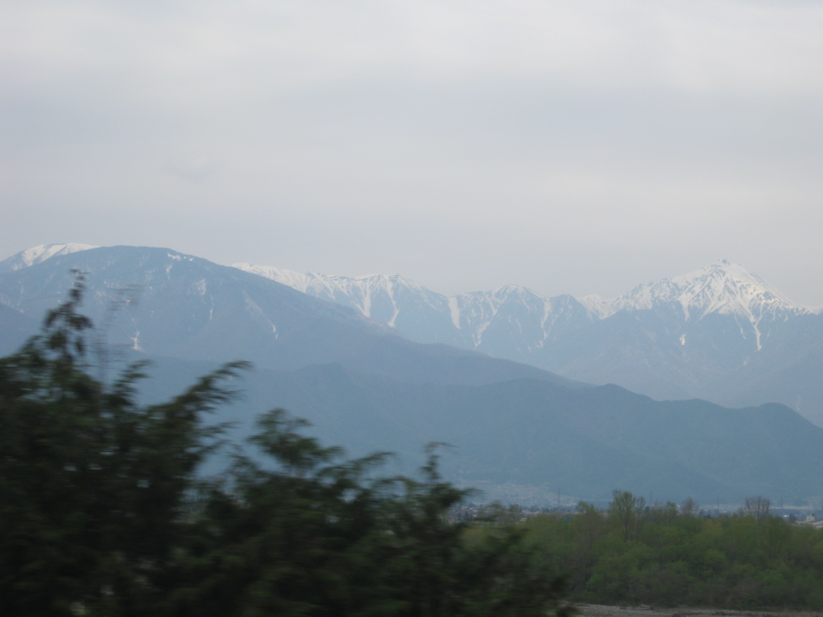 ガラス越し&コンデジで写り悪いけど、駅から出てすぐ進行左手に北アルプスが見えます
