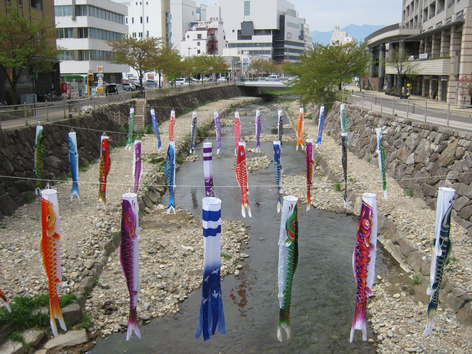松本市の中心部を流れる女鳥羽川にはこいのぼりが飾ってありました