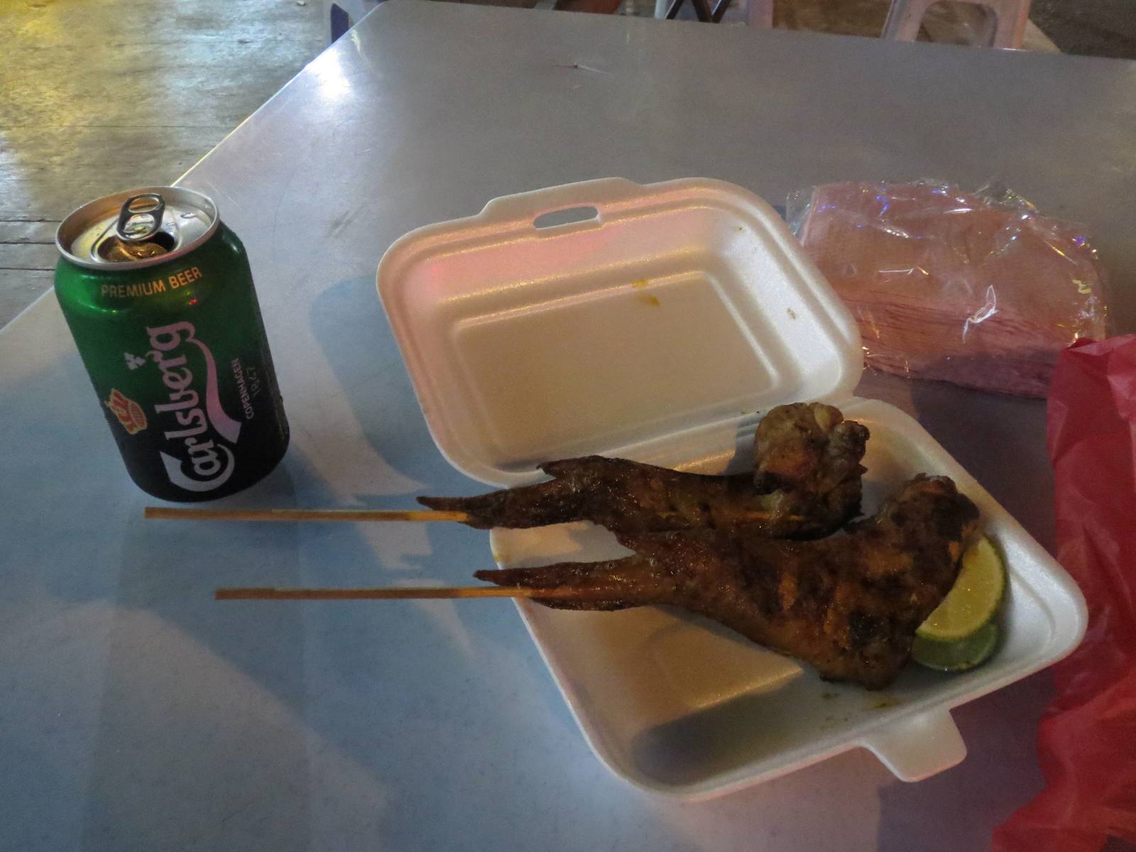 一杯やった後、屋台で手羽串食べた。
