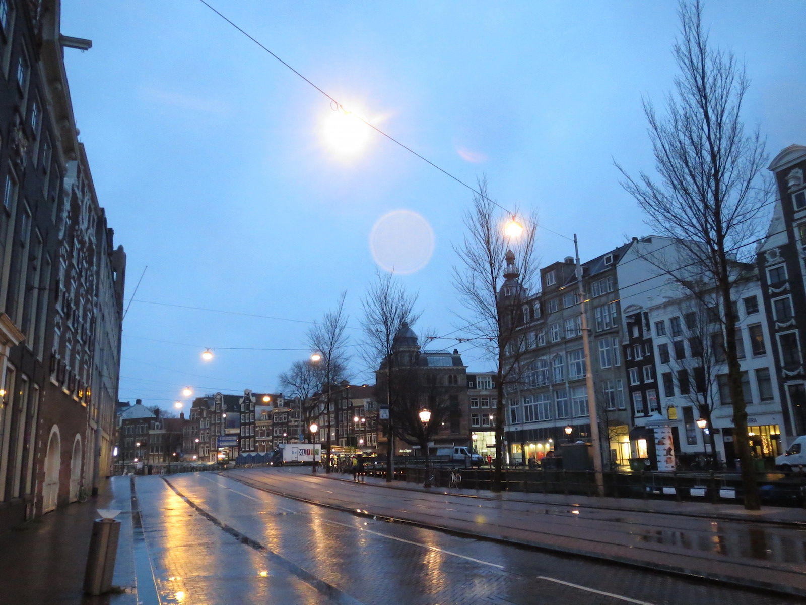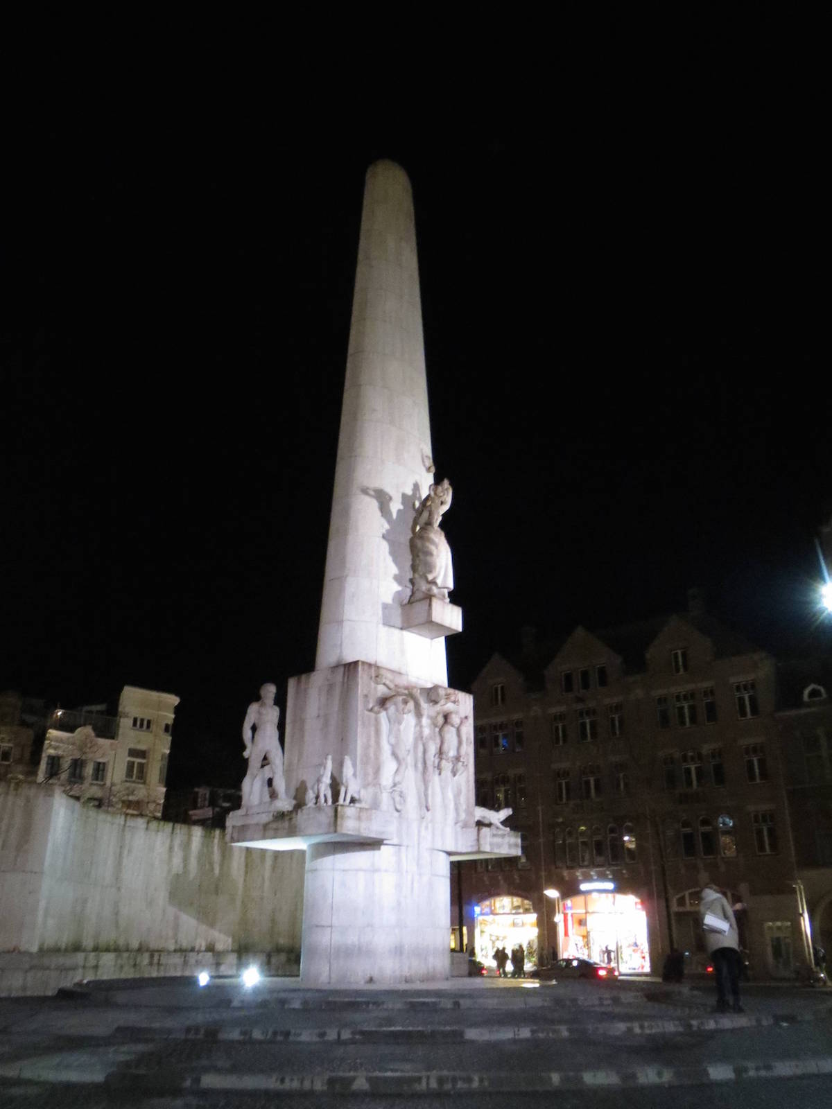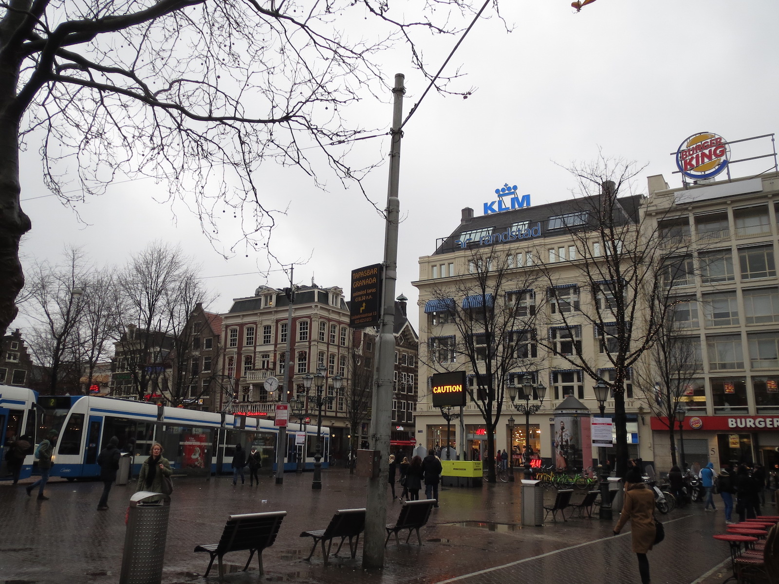 夜のダム広場。時期的にクリスマスなのでどこも綺麗な飾り付けが多い。