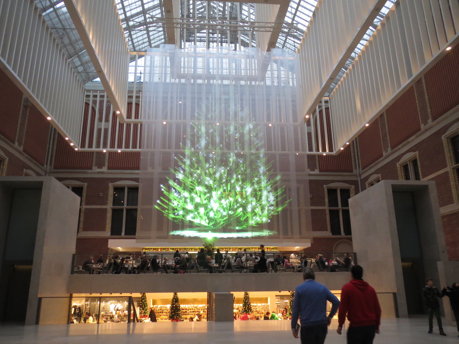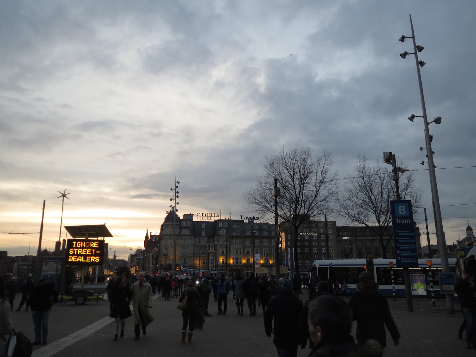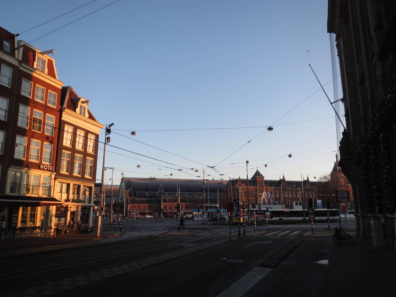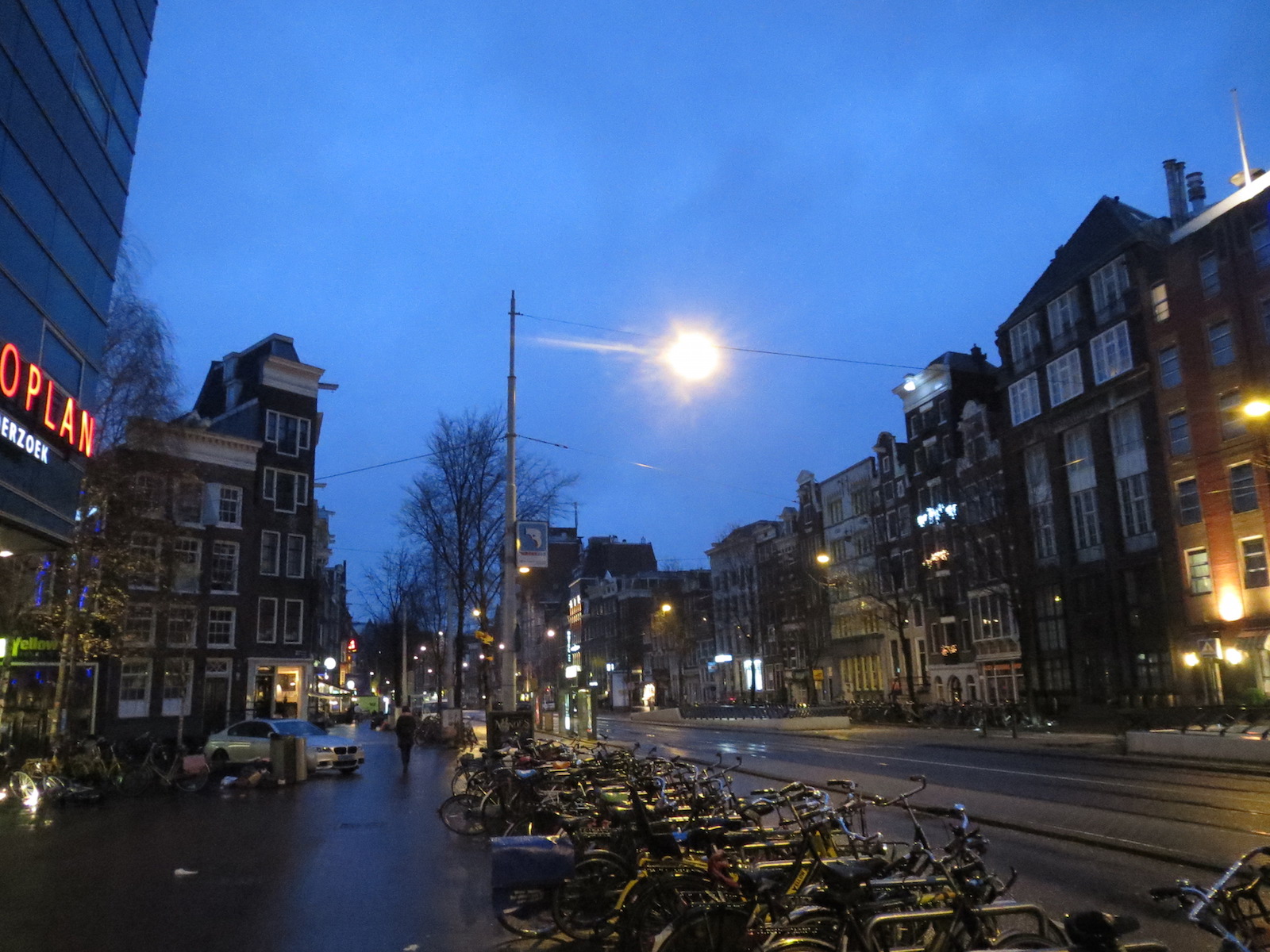 夜のダム広場。時期的にクリスマスなのでどこも綺麗な飾り付けが多い。