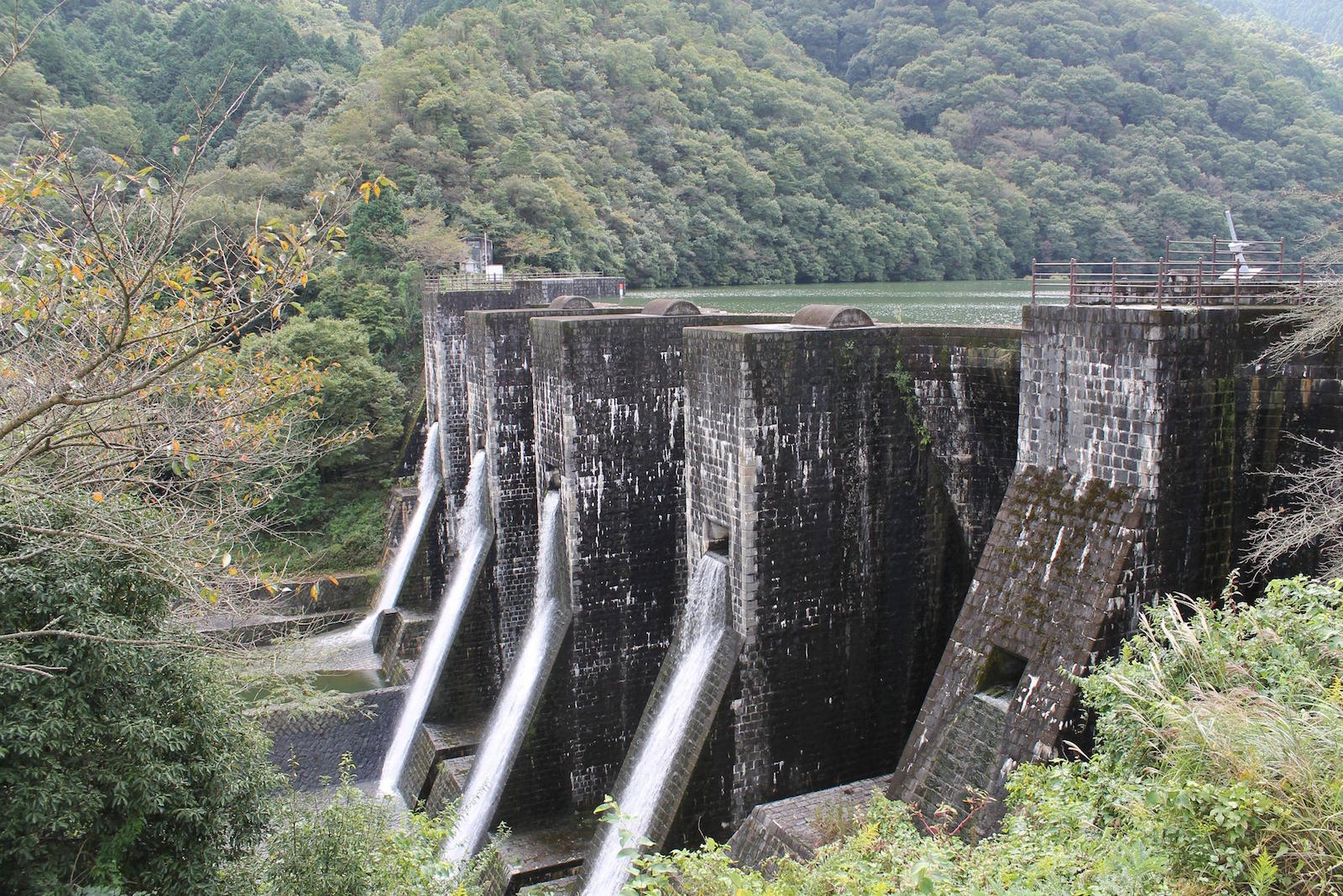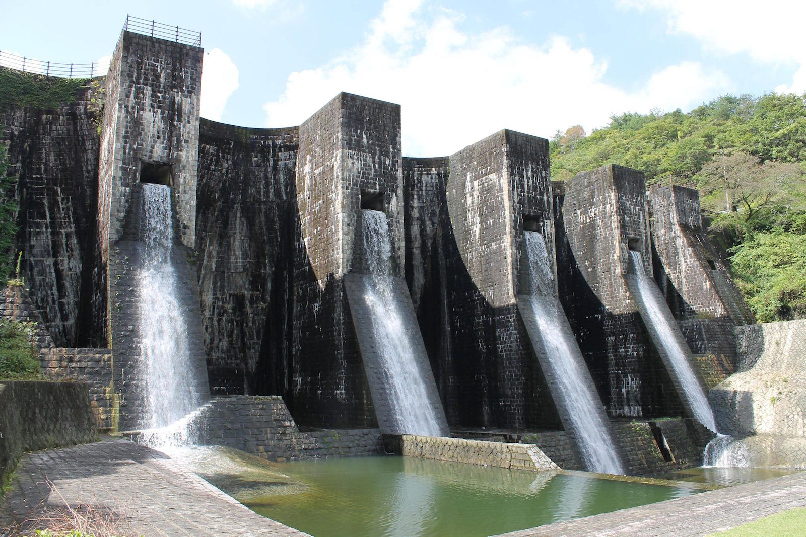 日本最古の石積式マルチプルアーチダムで、国の重要文化財に指定されているんや