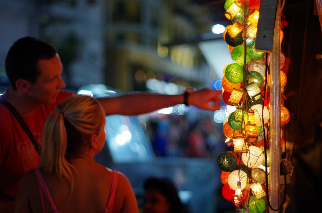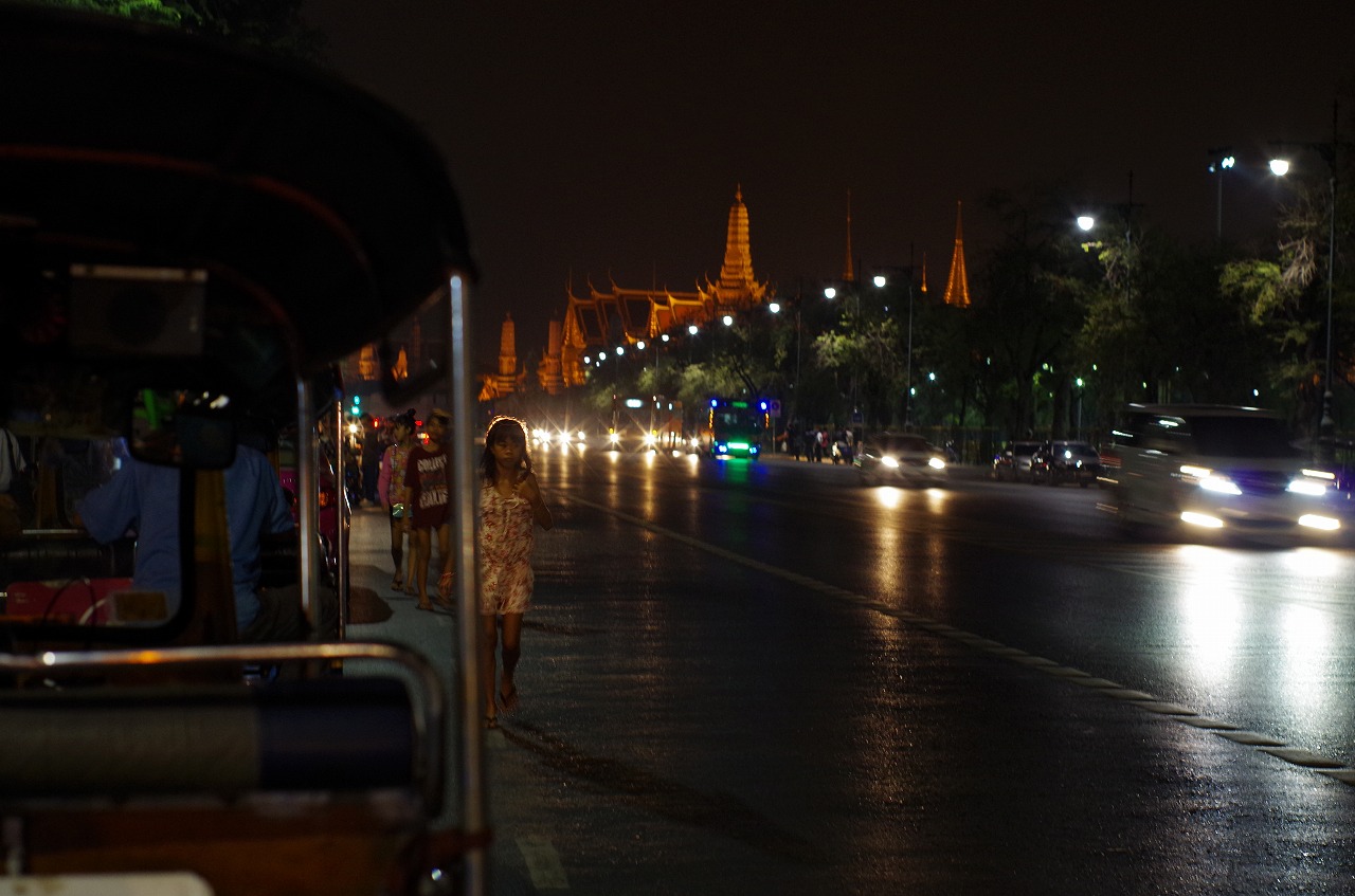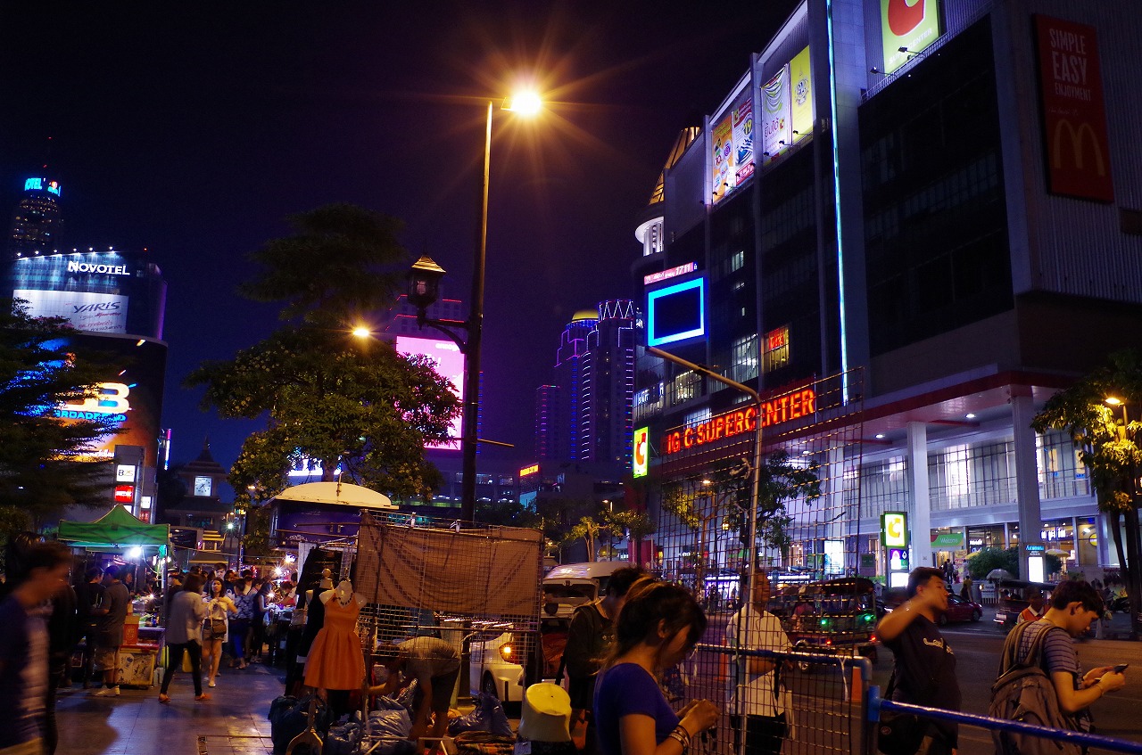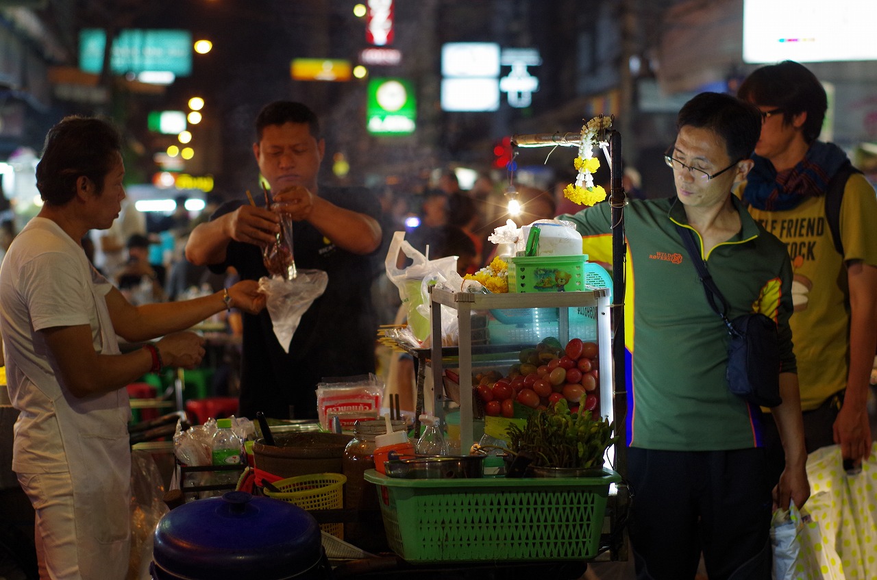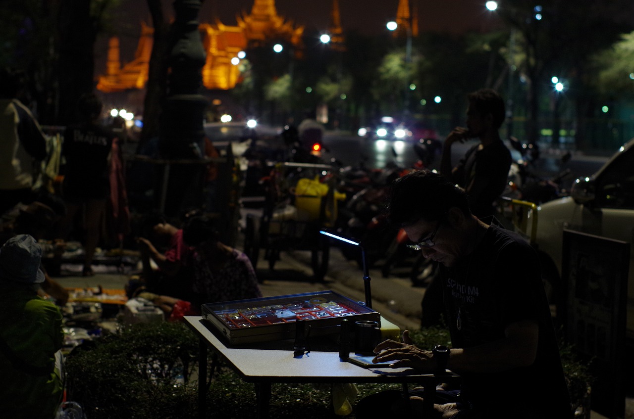 カオサンから歩いていけるお寺の足元にはローカルのナイトマーケットが広がる