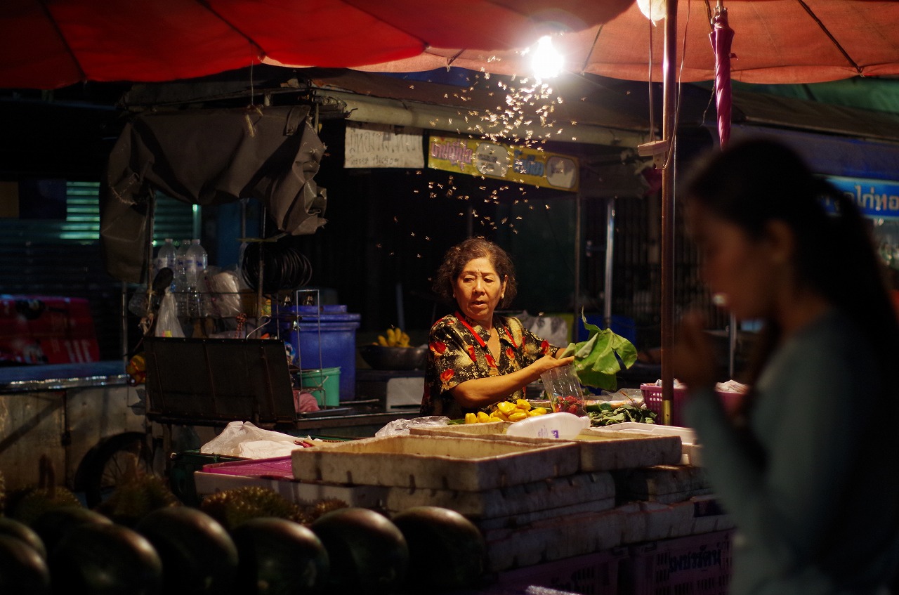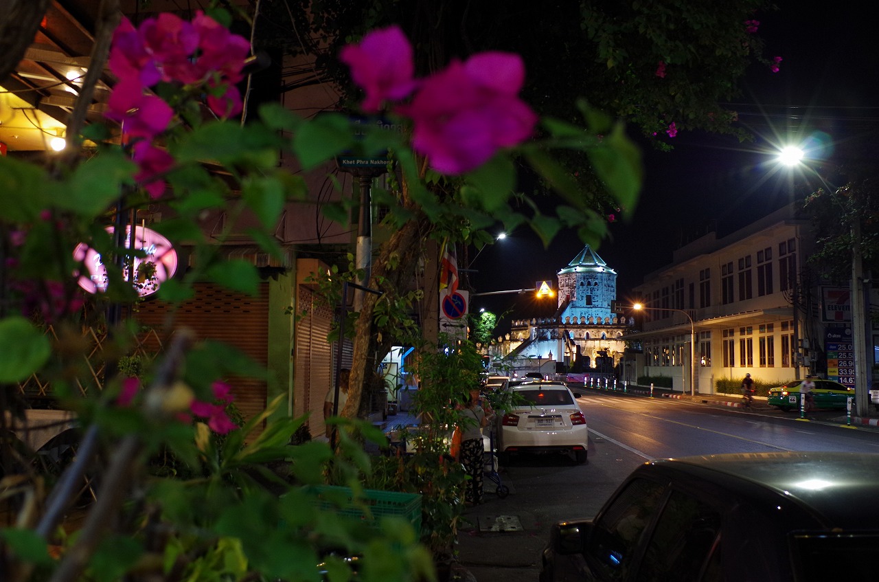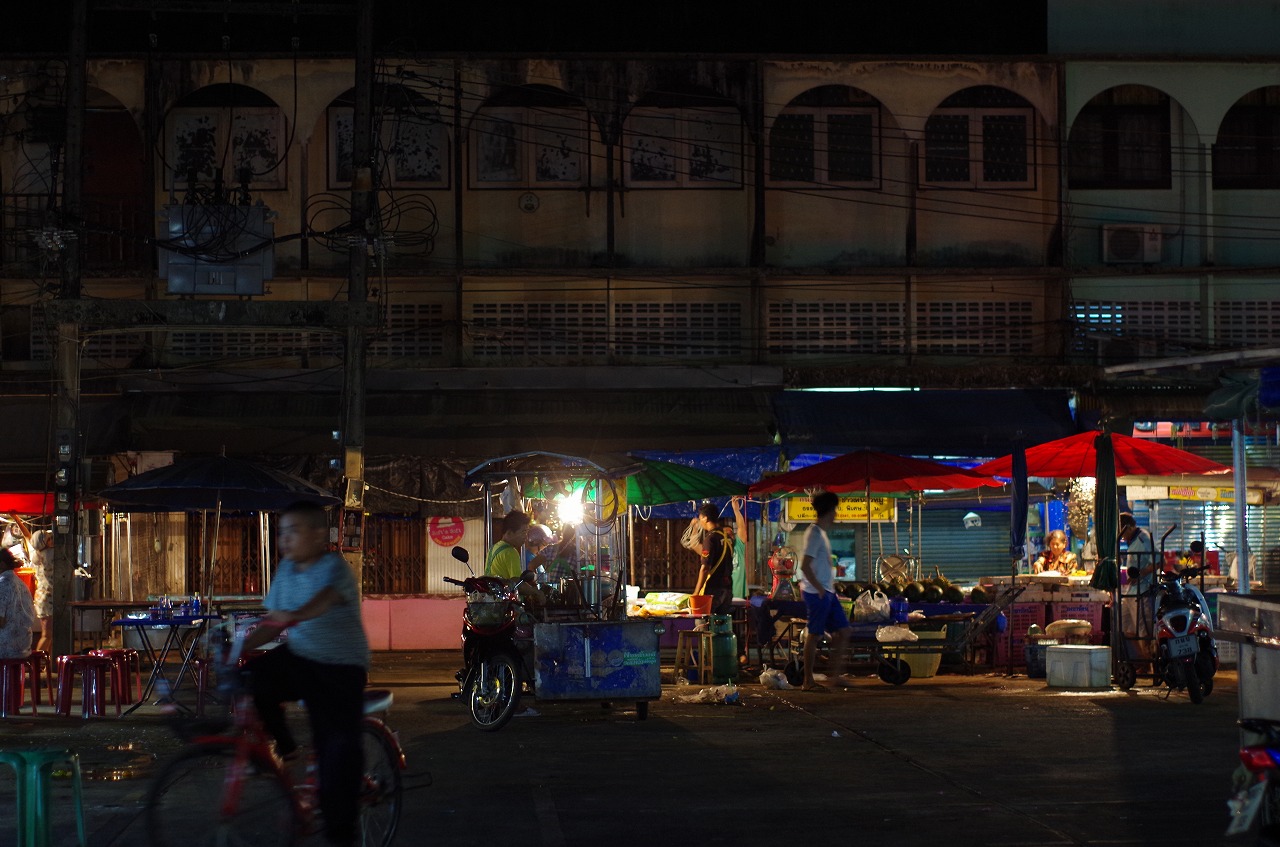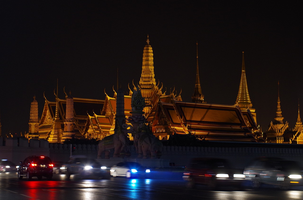 カオサンから歩いていけるお寺の足元にはローカルのナイトマーケットが広がる