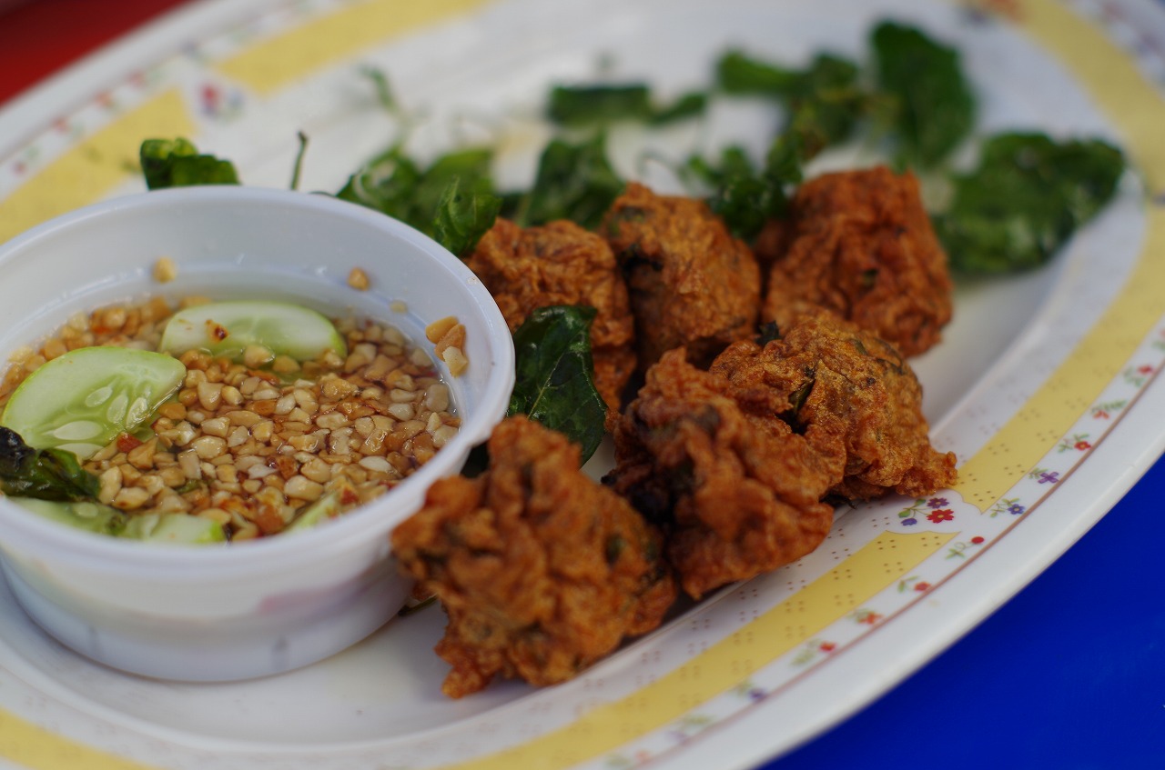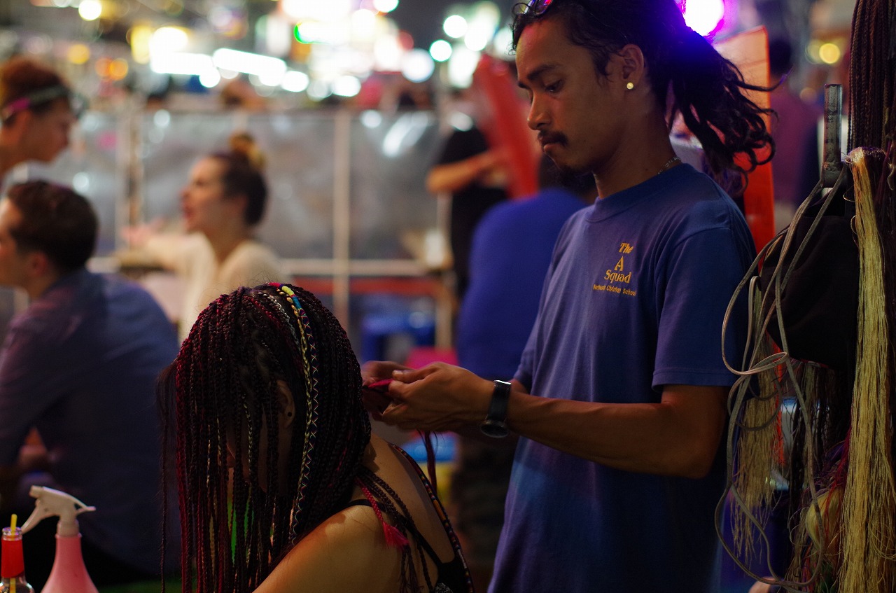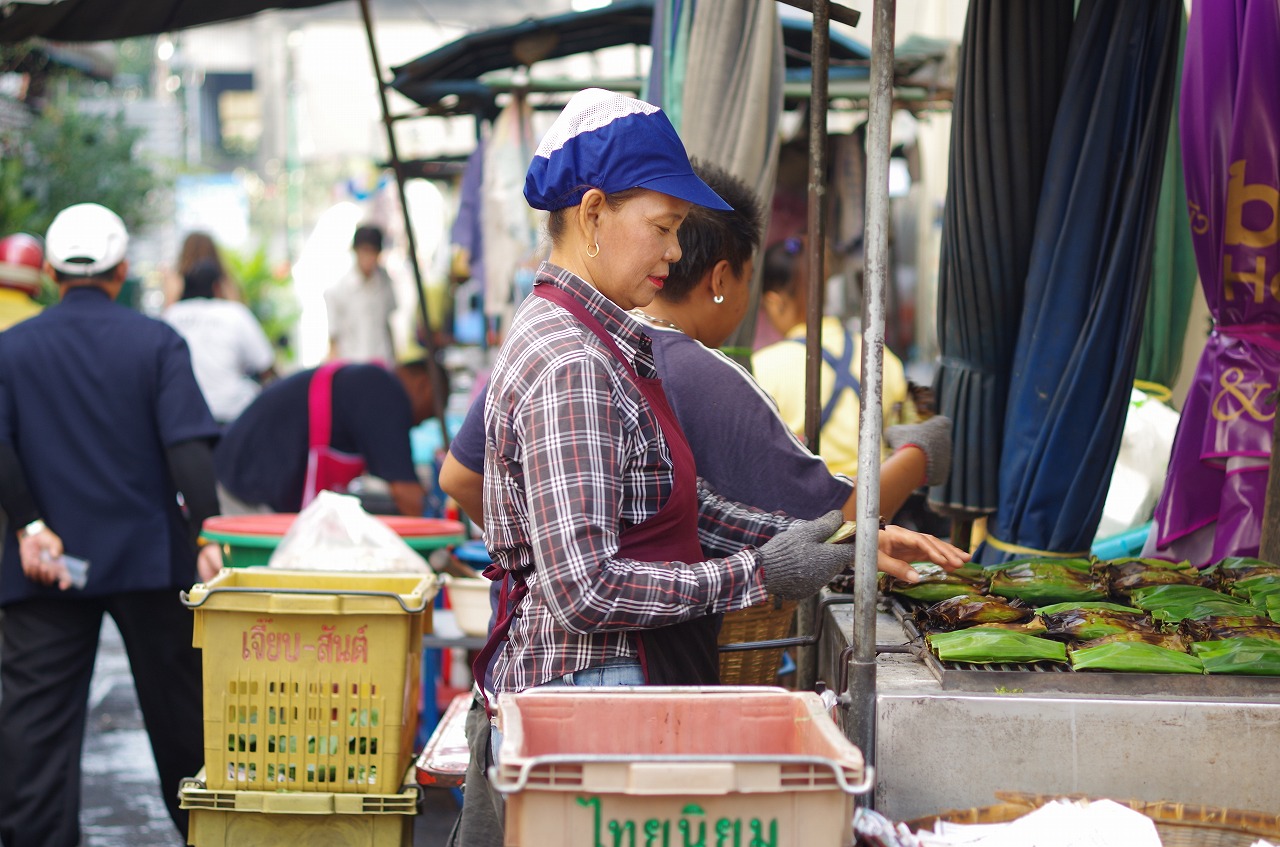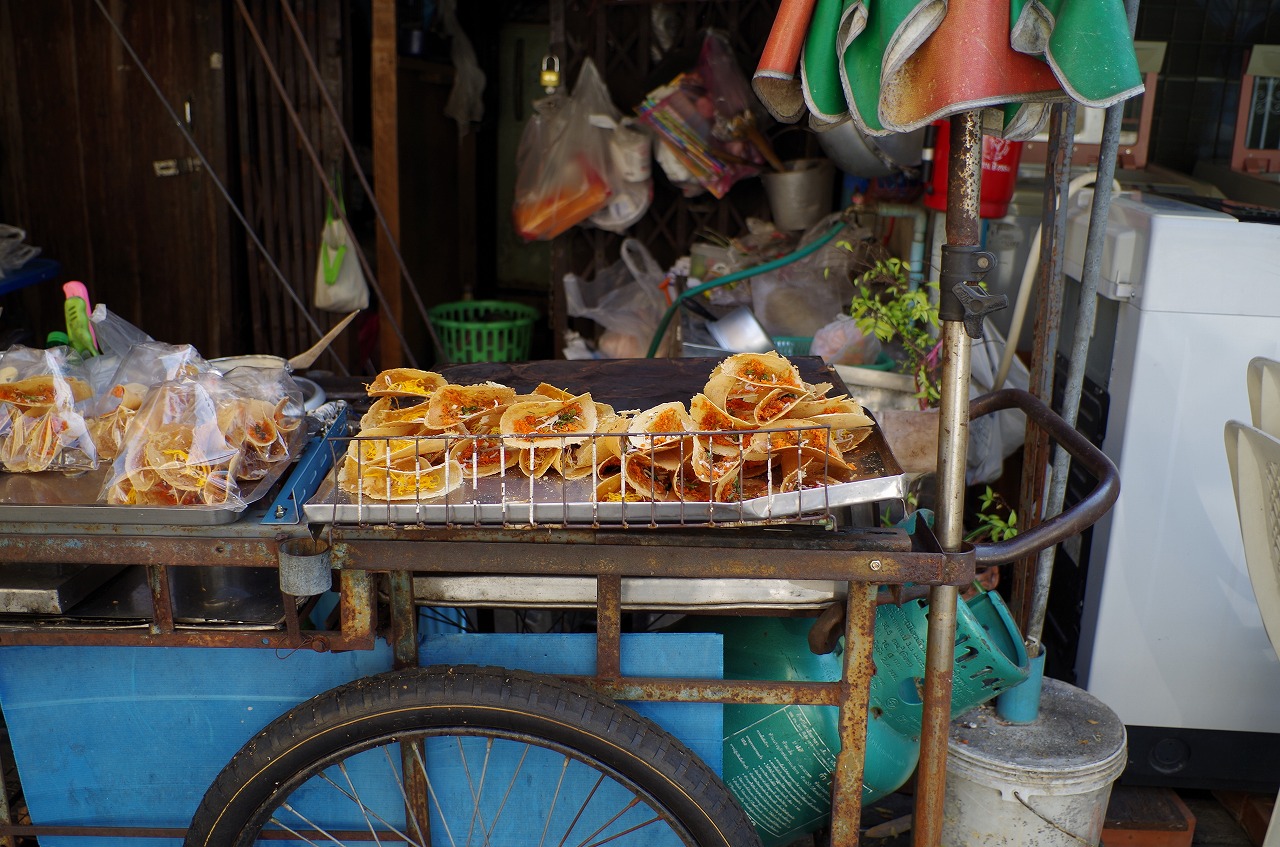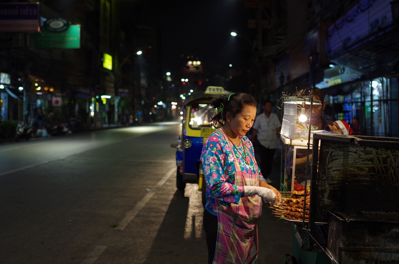 カオサンから歩いていけるお寺の足元にはローカルのナイトマーケットが広がる