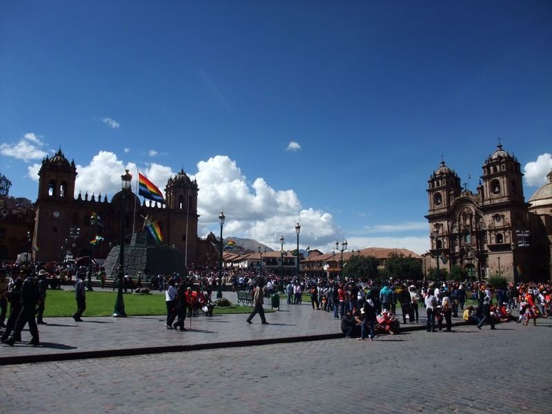 クスコの中央広場にあるマンコ・カパックの像や