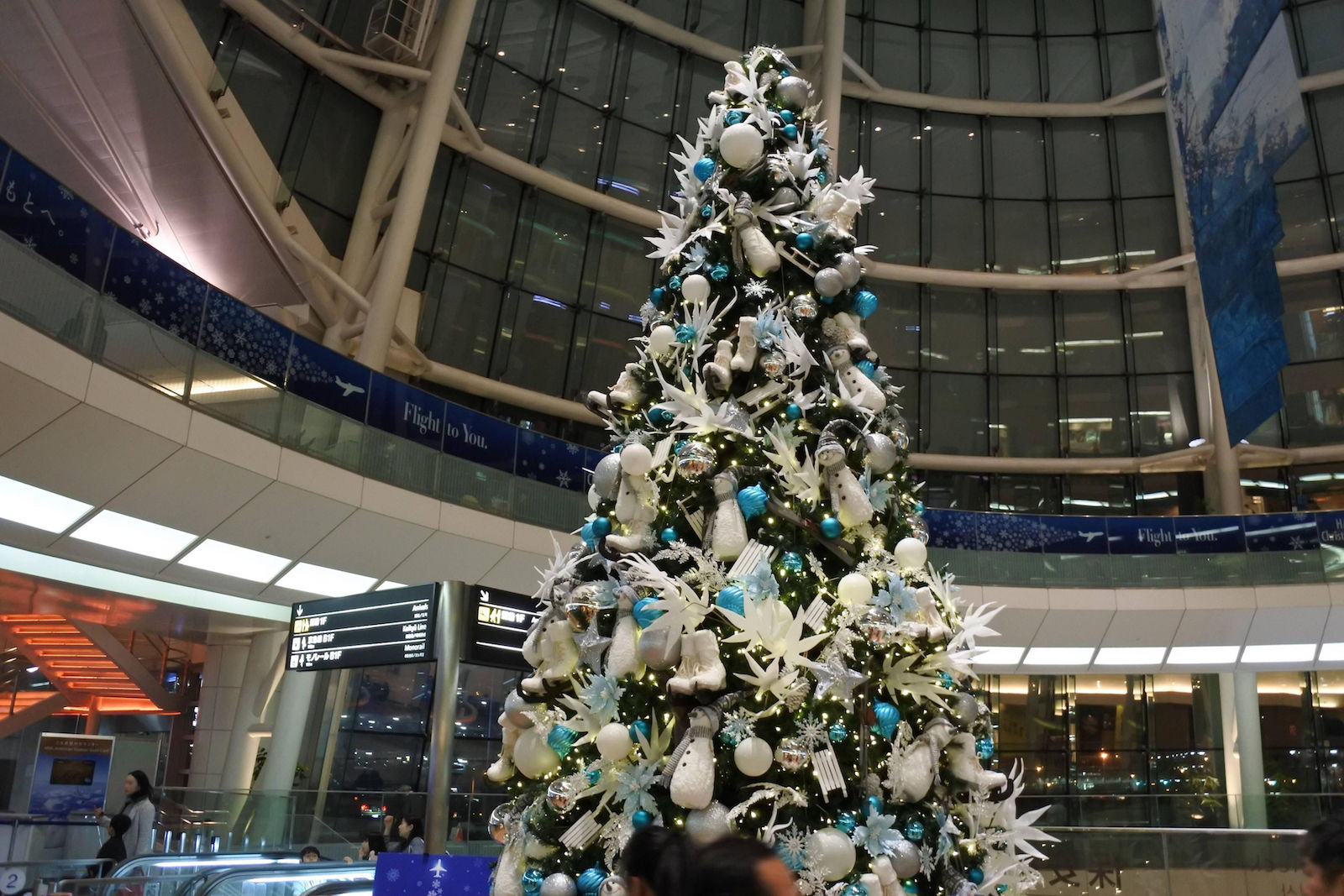 羽田空港には大きいクリスマスツリーがありました。