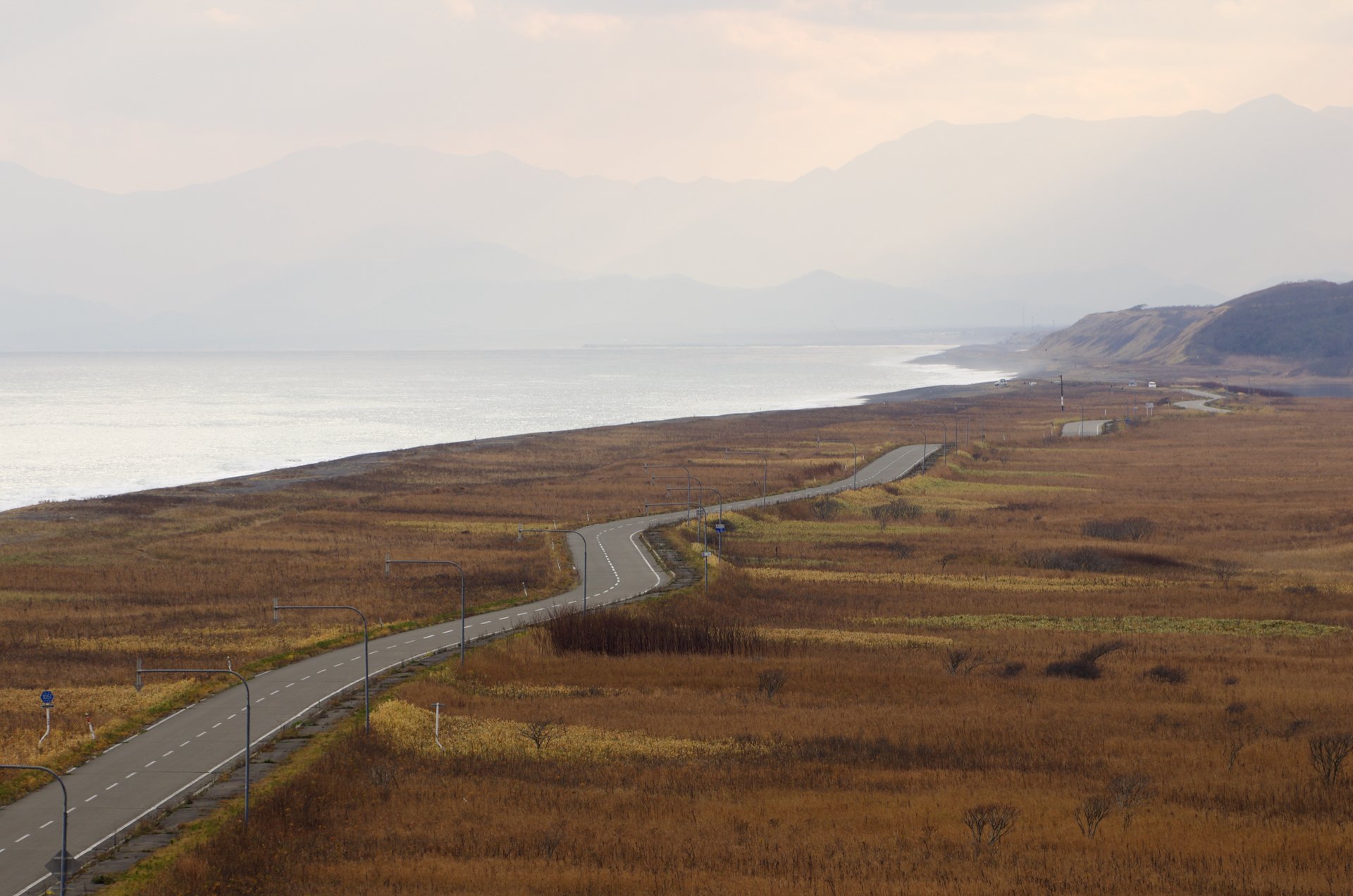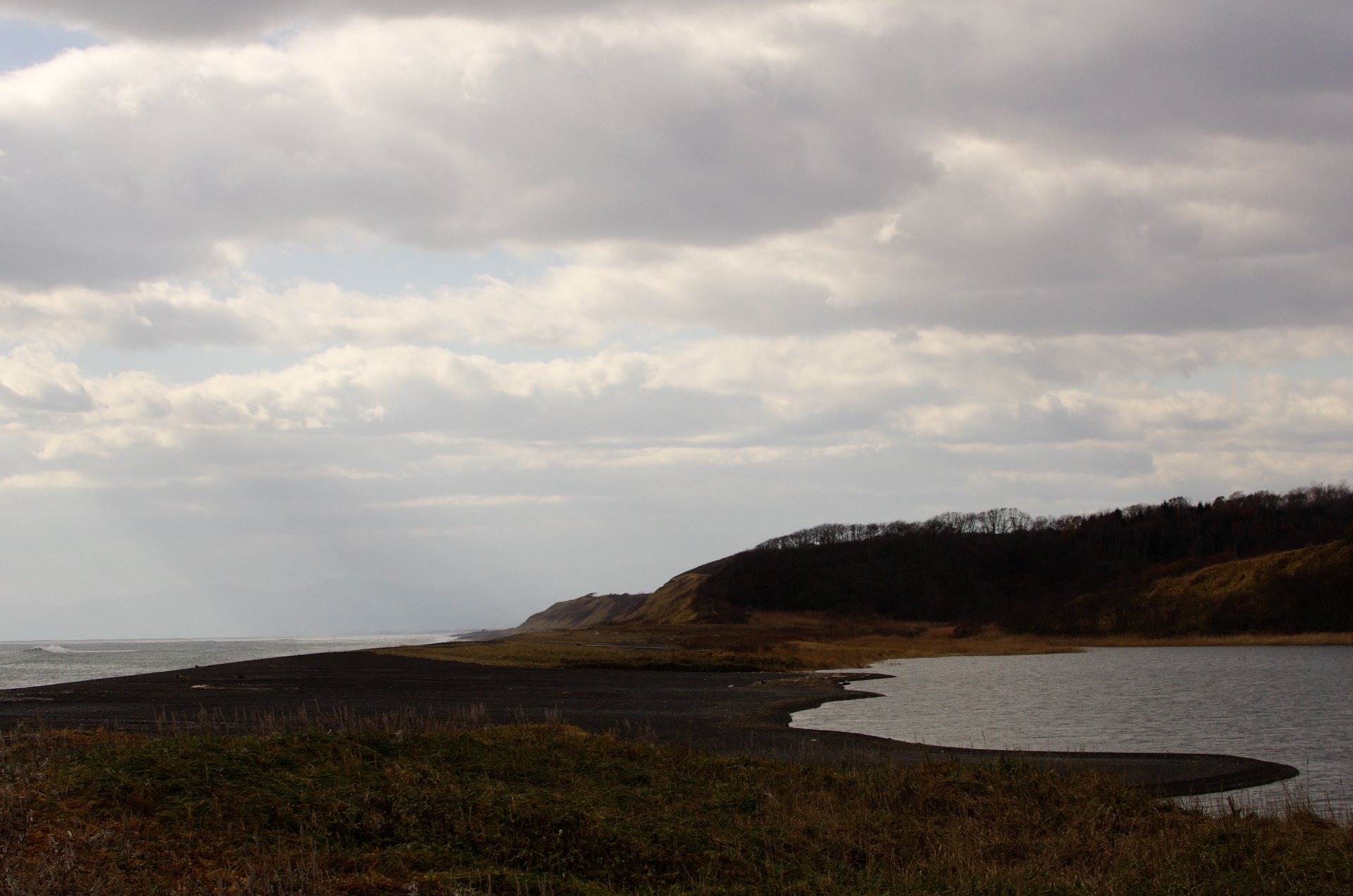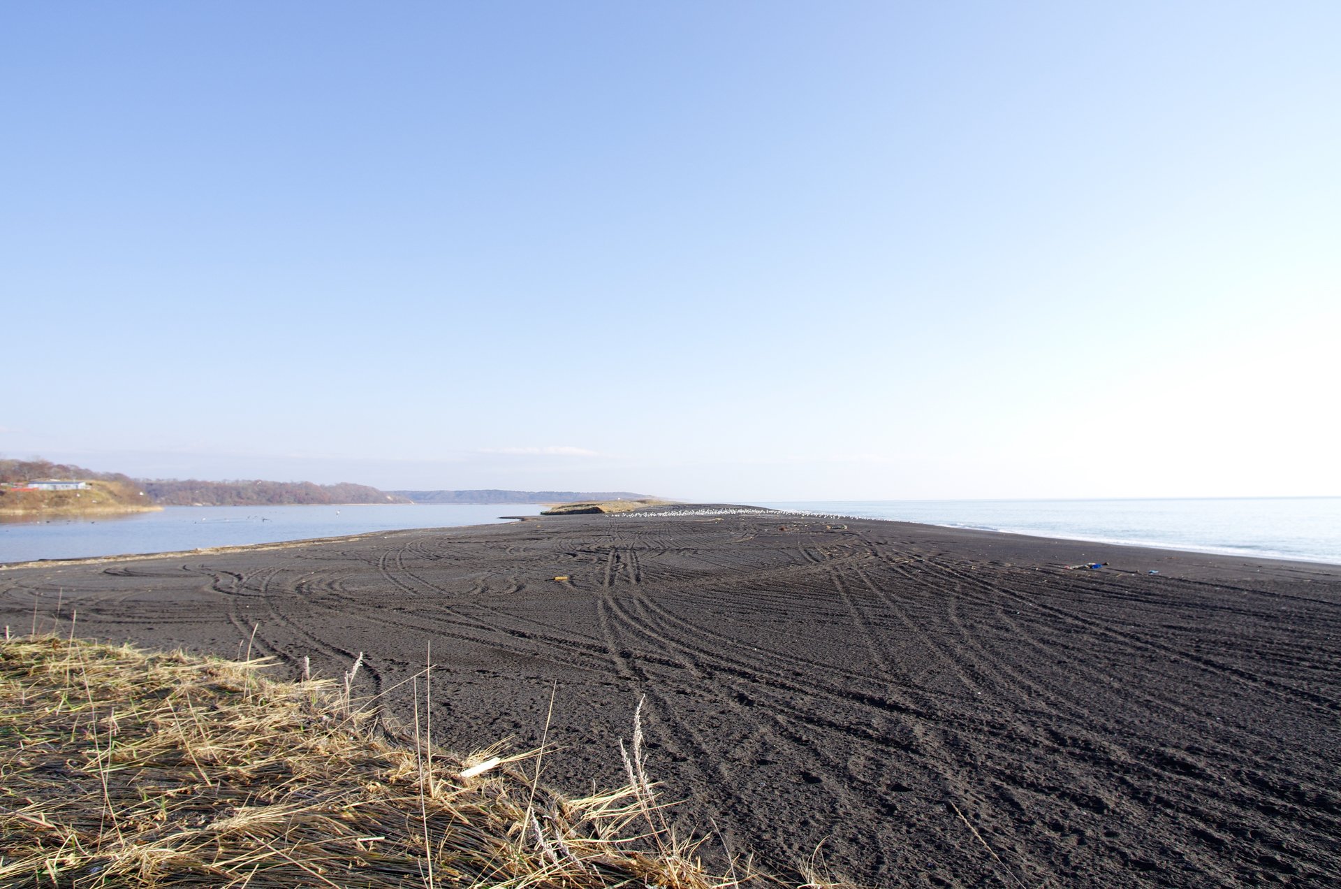 左が沼で右が海