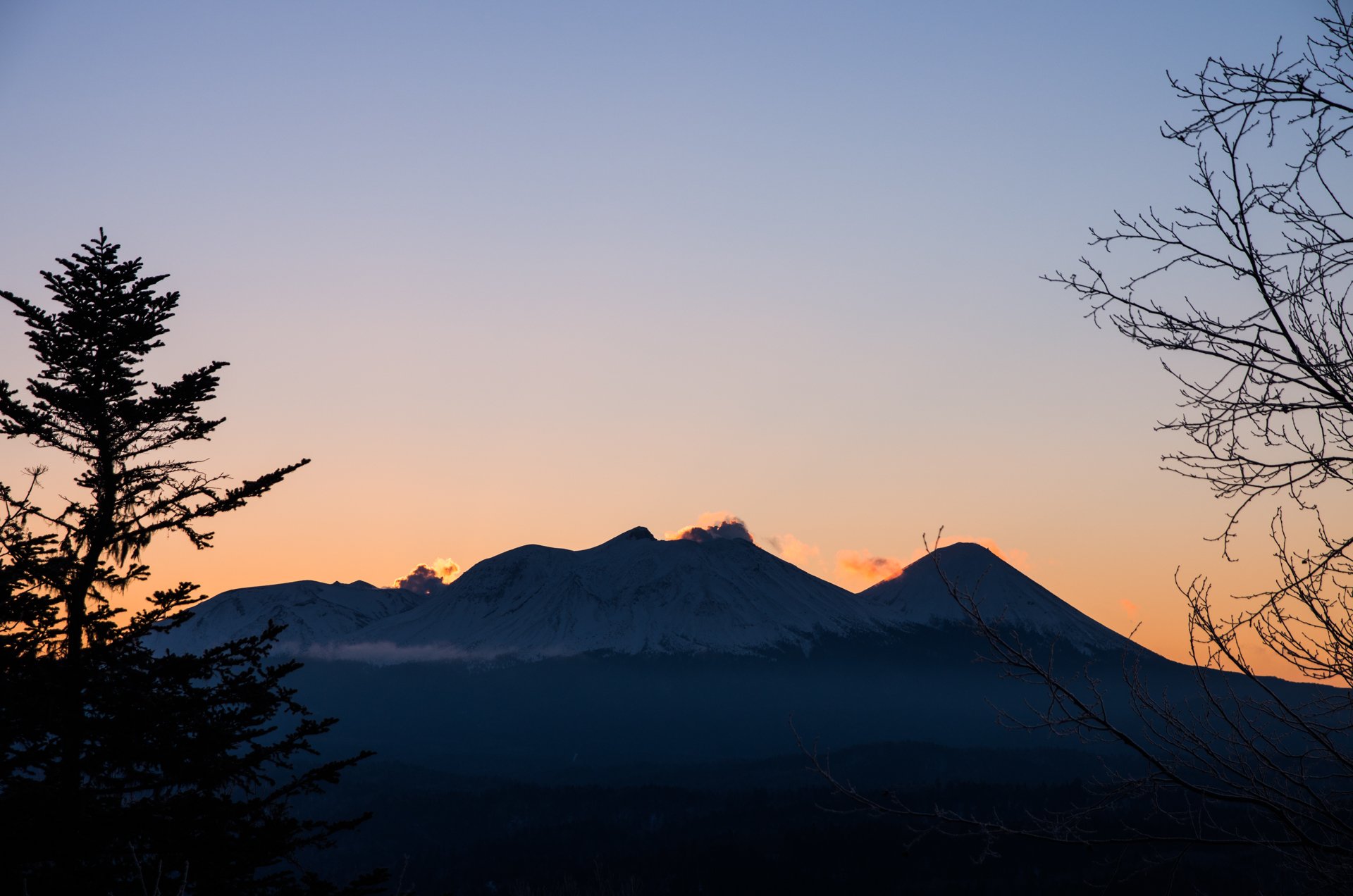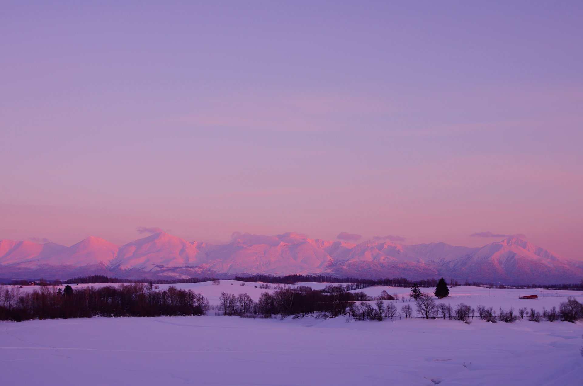 夕陽に染まる十勝連峰