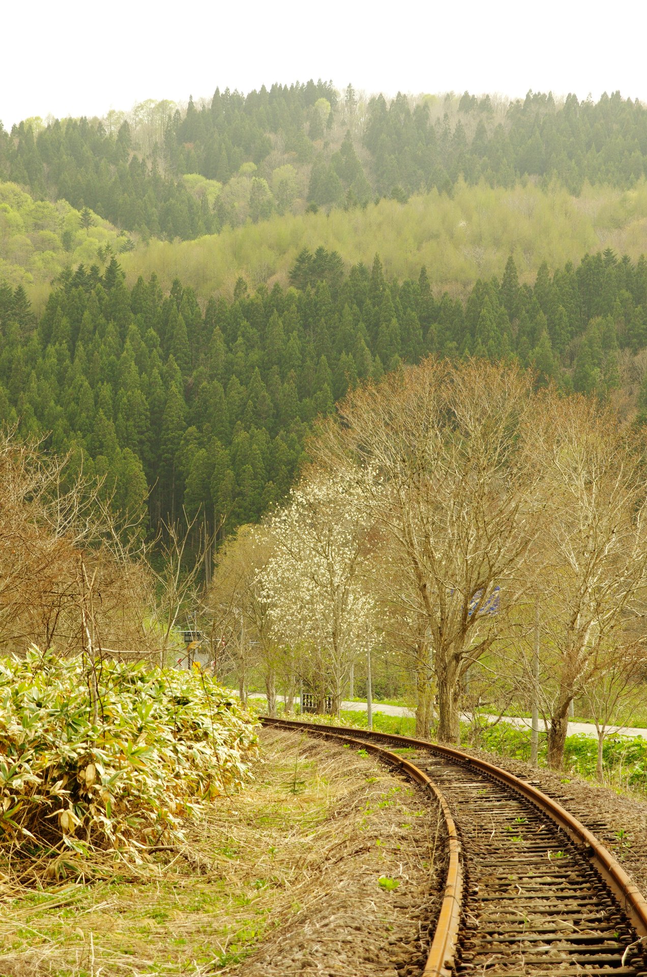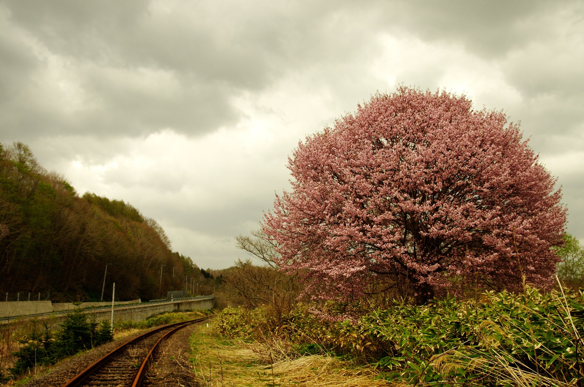 桜の木と廃線