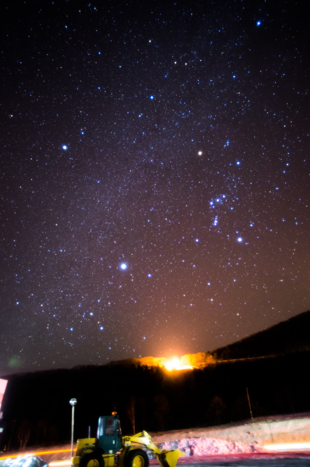 今は通れない日勝峠の清水側にてオリオン座と冬の大三角