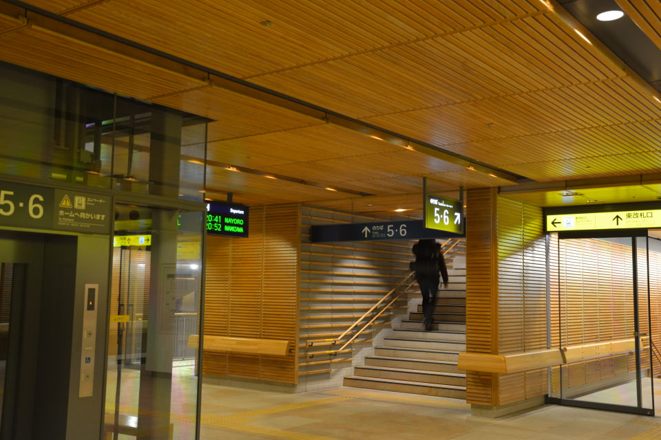 構内放送「現在東北新幹線は、福島駅構内の信号故障により運転を見合わせております…」