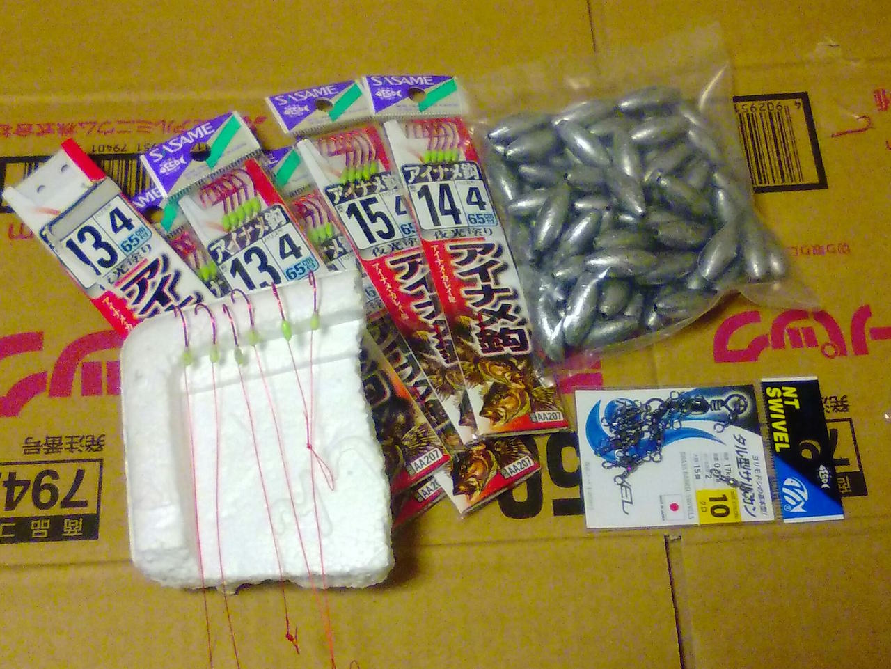 仕掛けは糸にナツメ型錘を通して、サルカン結んで、