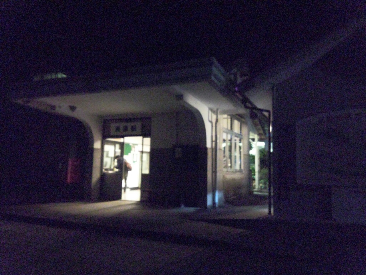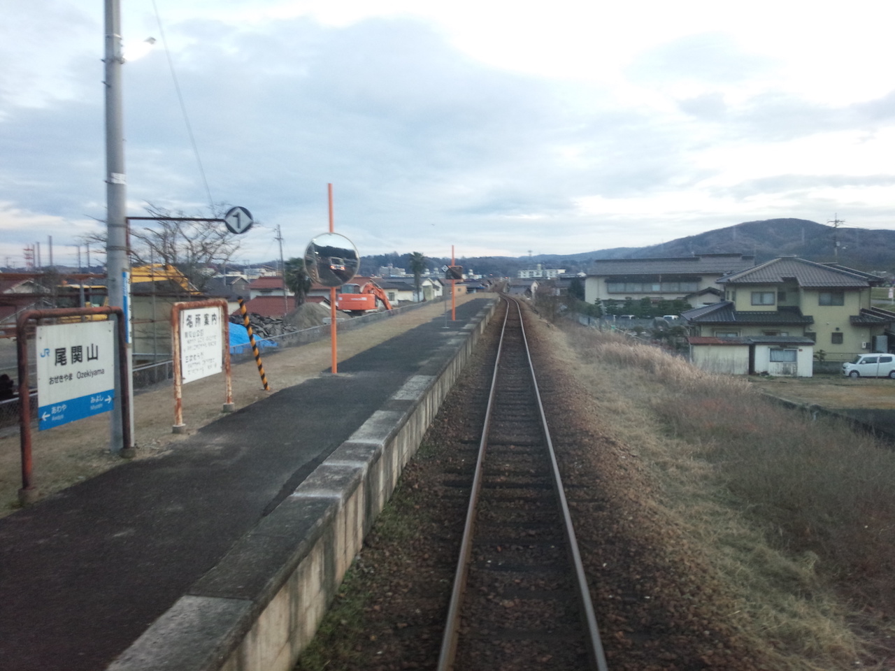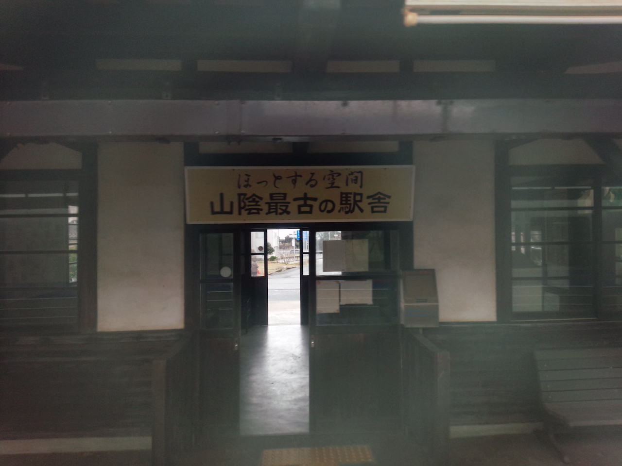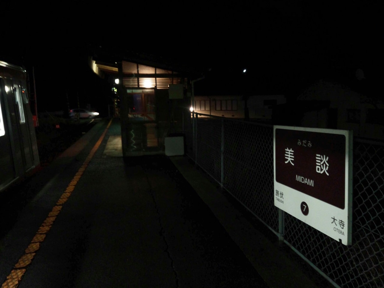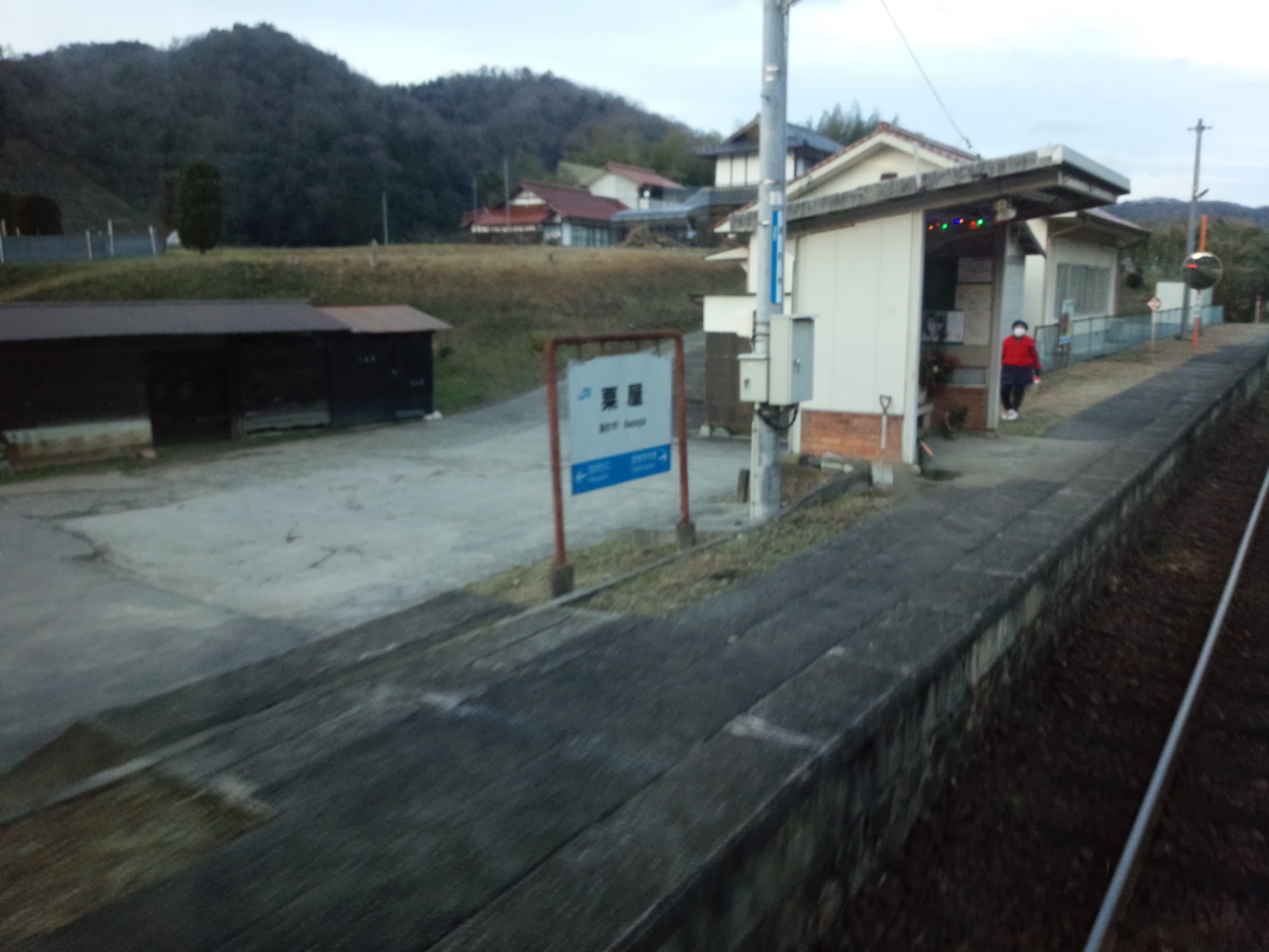 粟屋駅のホームでおばちゃん