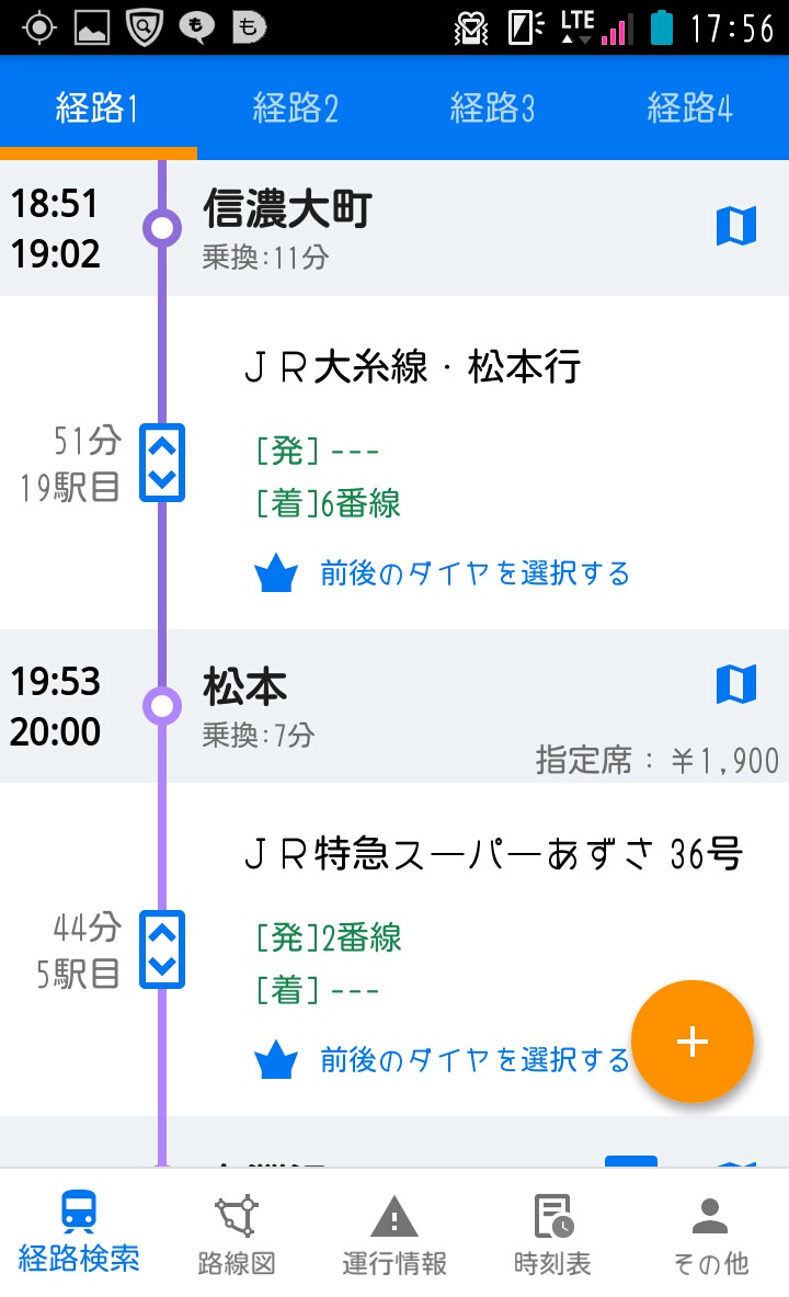 ④最寄りから西国分寺乗り換え立川松本経由長野行き(5時間半超)←いつもの