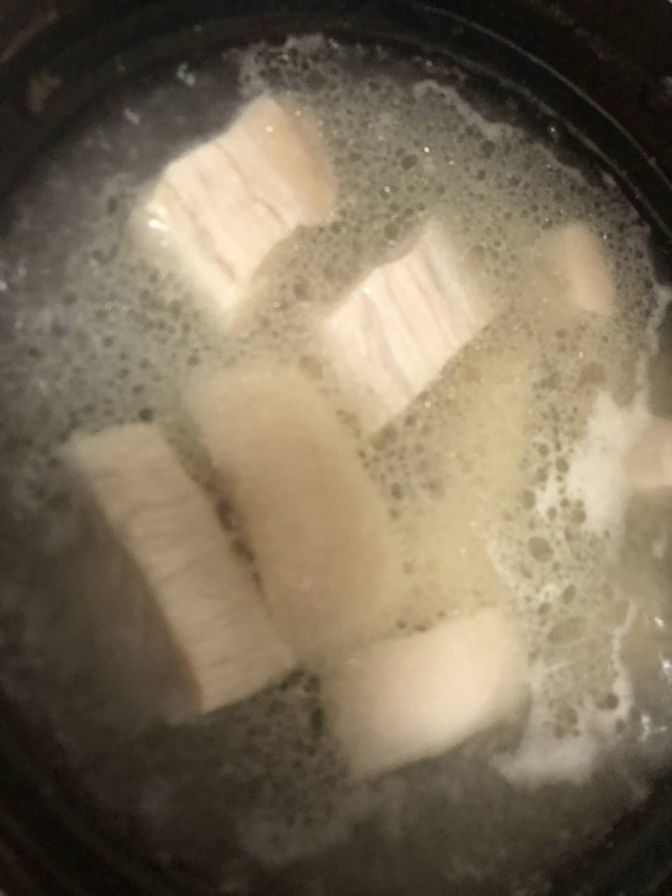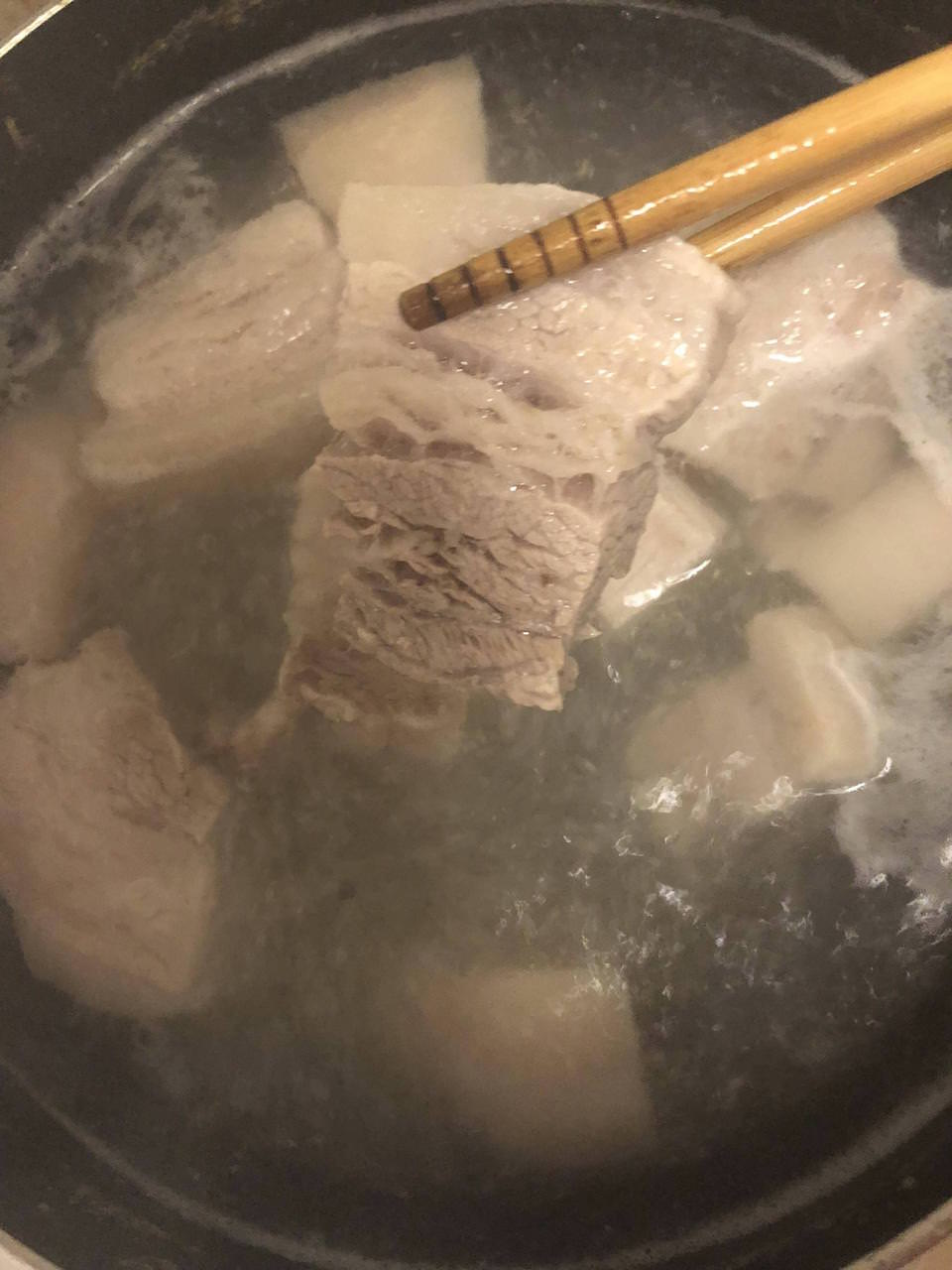 下茹でで臭みを抜いて、余分な脂を落とすらしいよ!