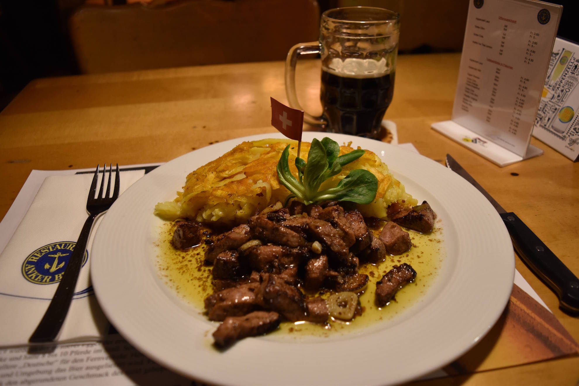 ベルンで食べた羊肉のレシュティ添え