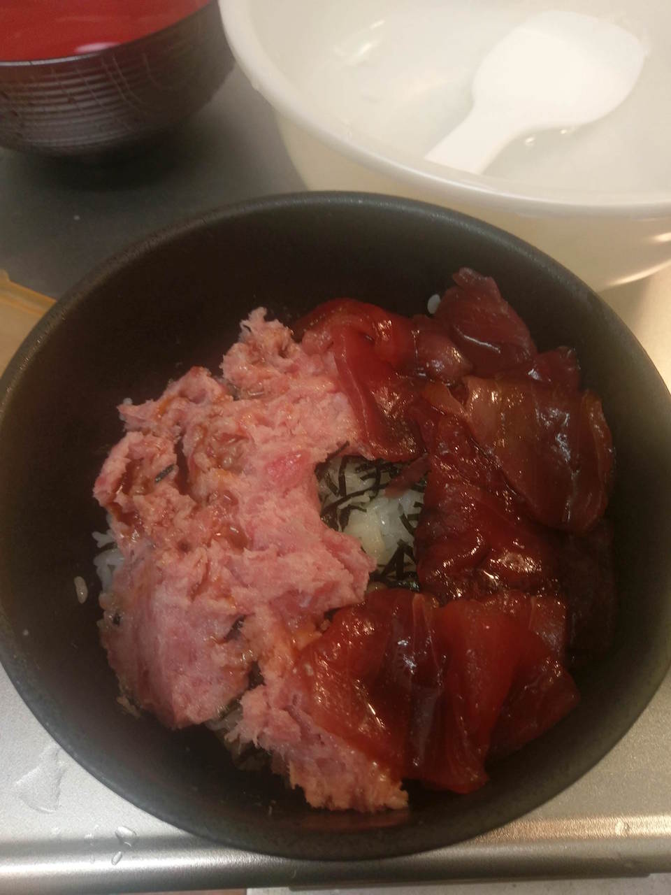 一緒に漬けこんでたマグロの切り身も乗せて2色丼に