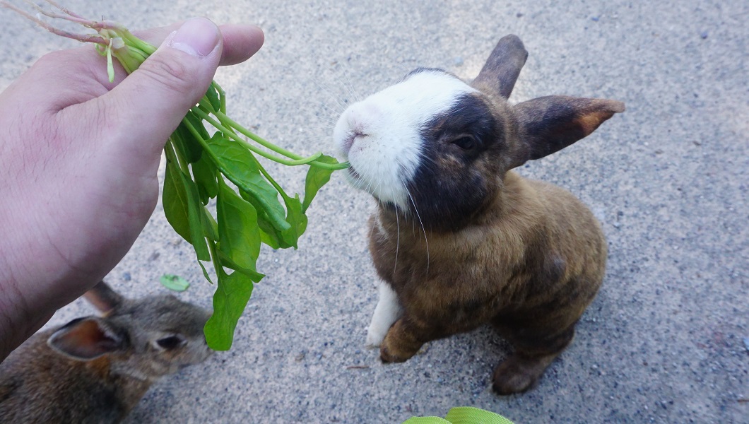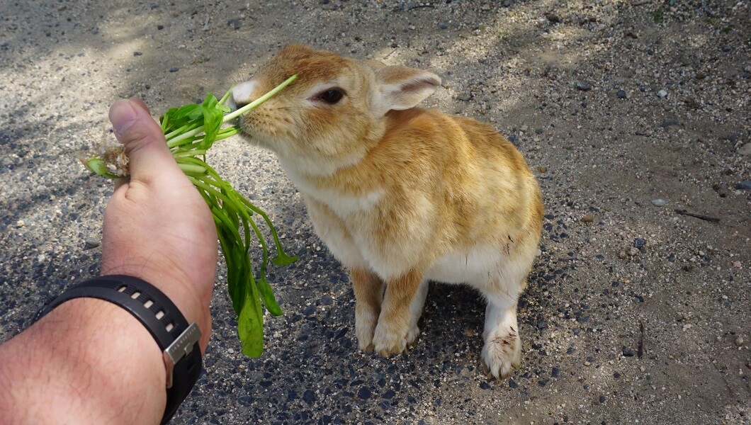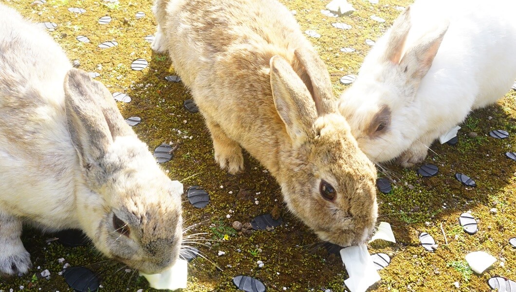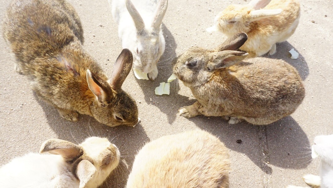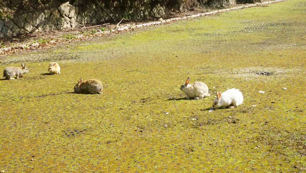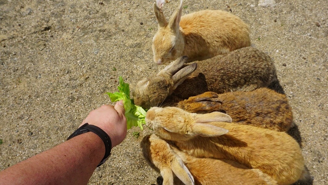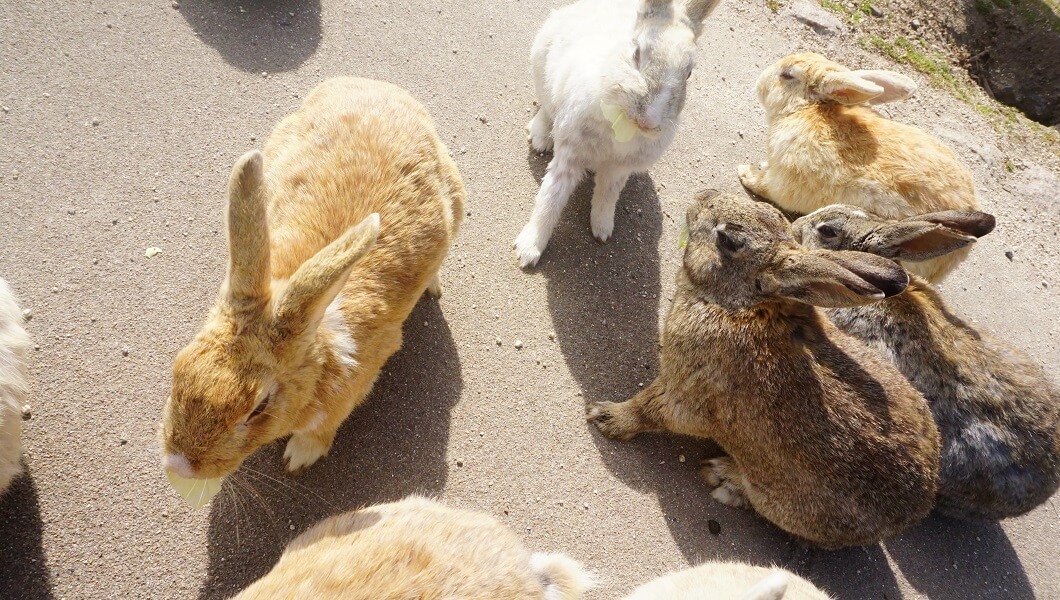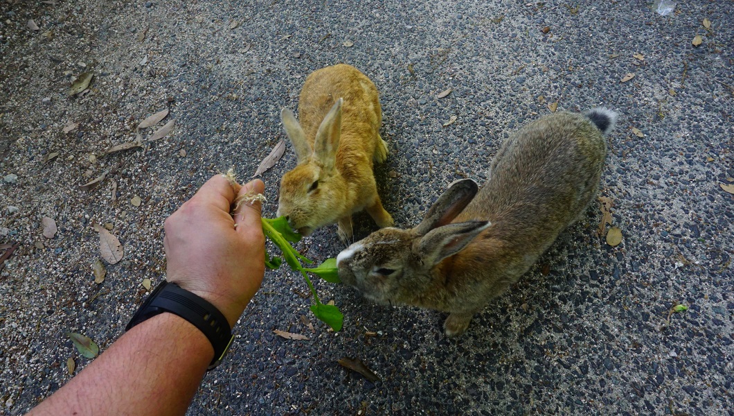 が沢山いる島で、ウサギも人なれしているから近寄ってくるよ
