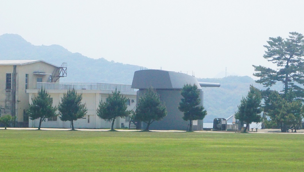 幹部候補生学校庁舎の後ろには戦艦陸奥の主砲が管理されています