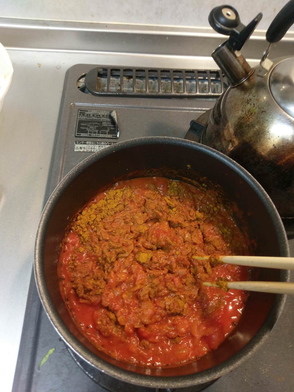 今のところカレー風味のトマトソースって感じやけどちゃんとカレーになるん?