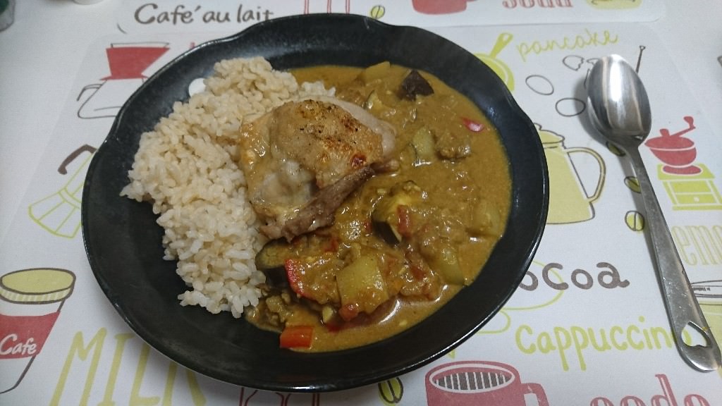 昨日ちょうど作ったナスとココナッツのカレーやで。