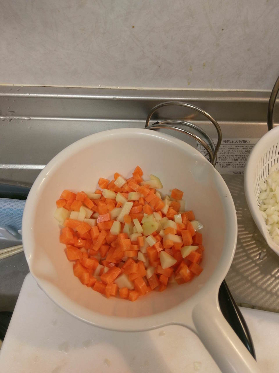 そのときにみじん切りにしたニンジンとじゃがいもも入れました