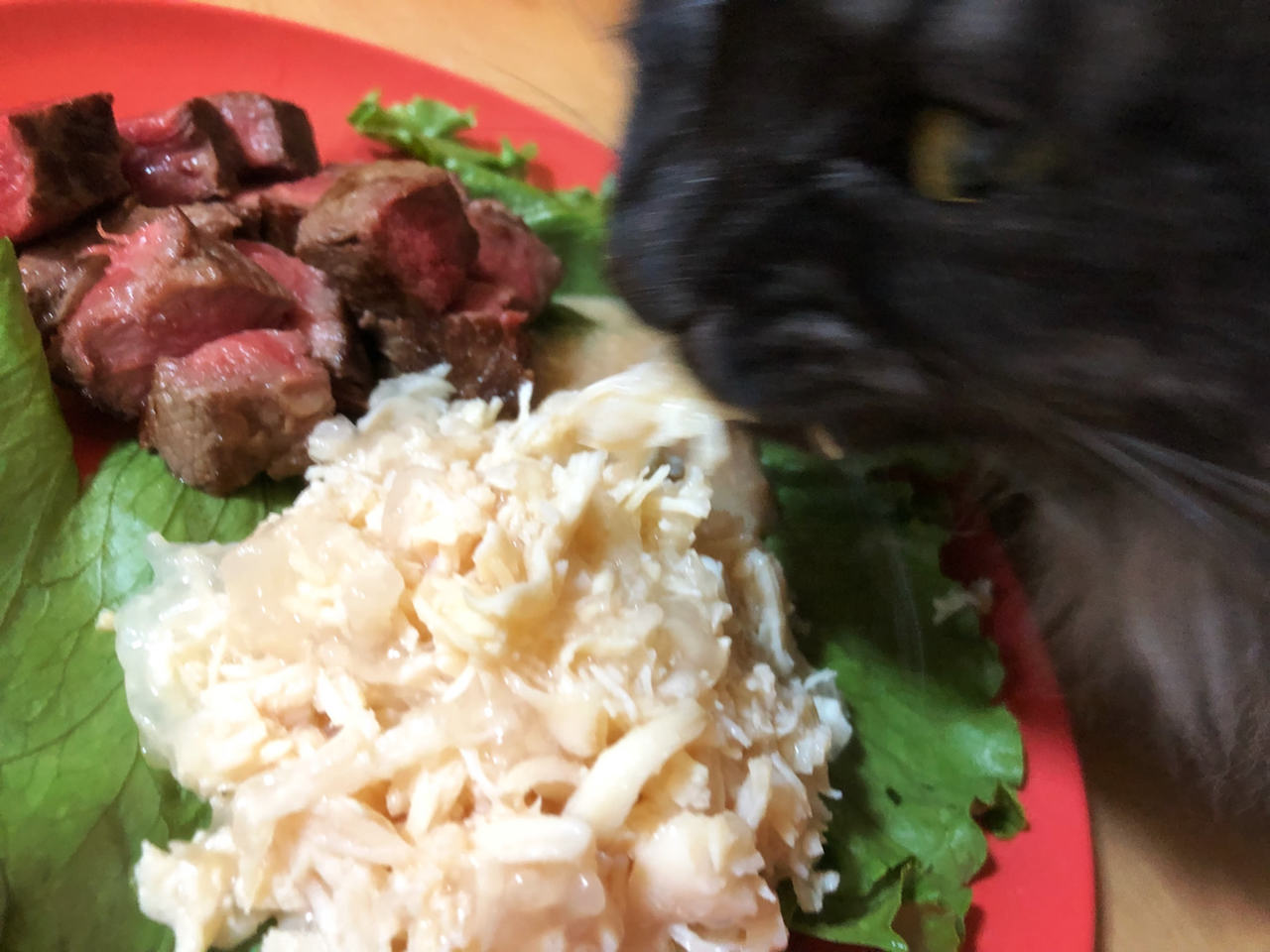 ステーキを焼いてる時からずっとみゃおみゃお大騒動で