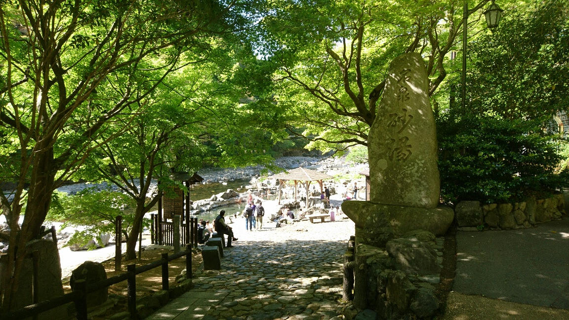 風呂あがりにダム下の温泉「砂湯」に偵察がてら散歩。
